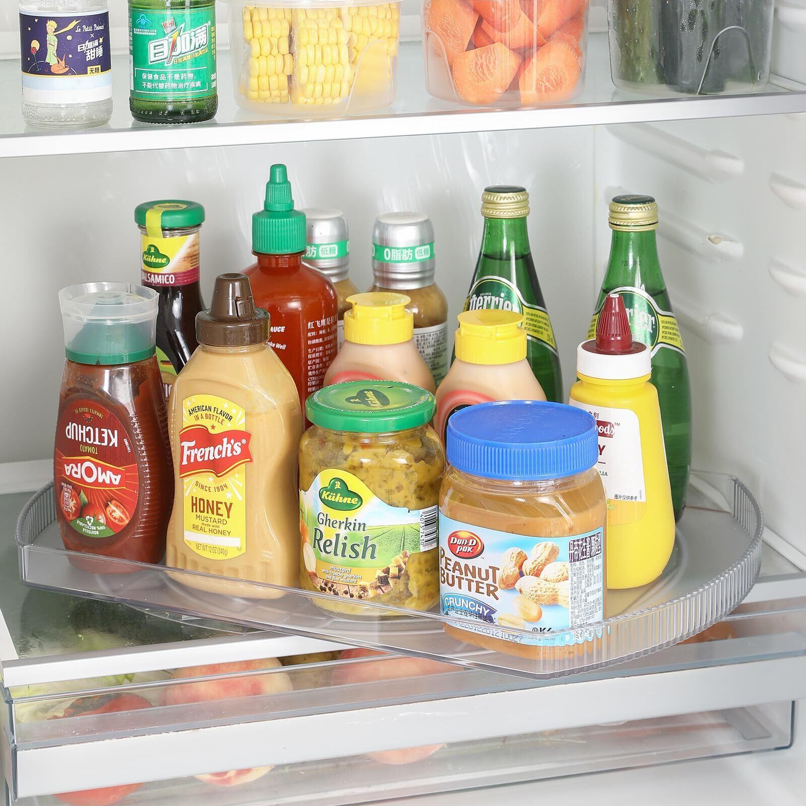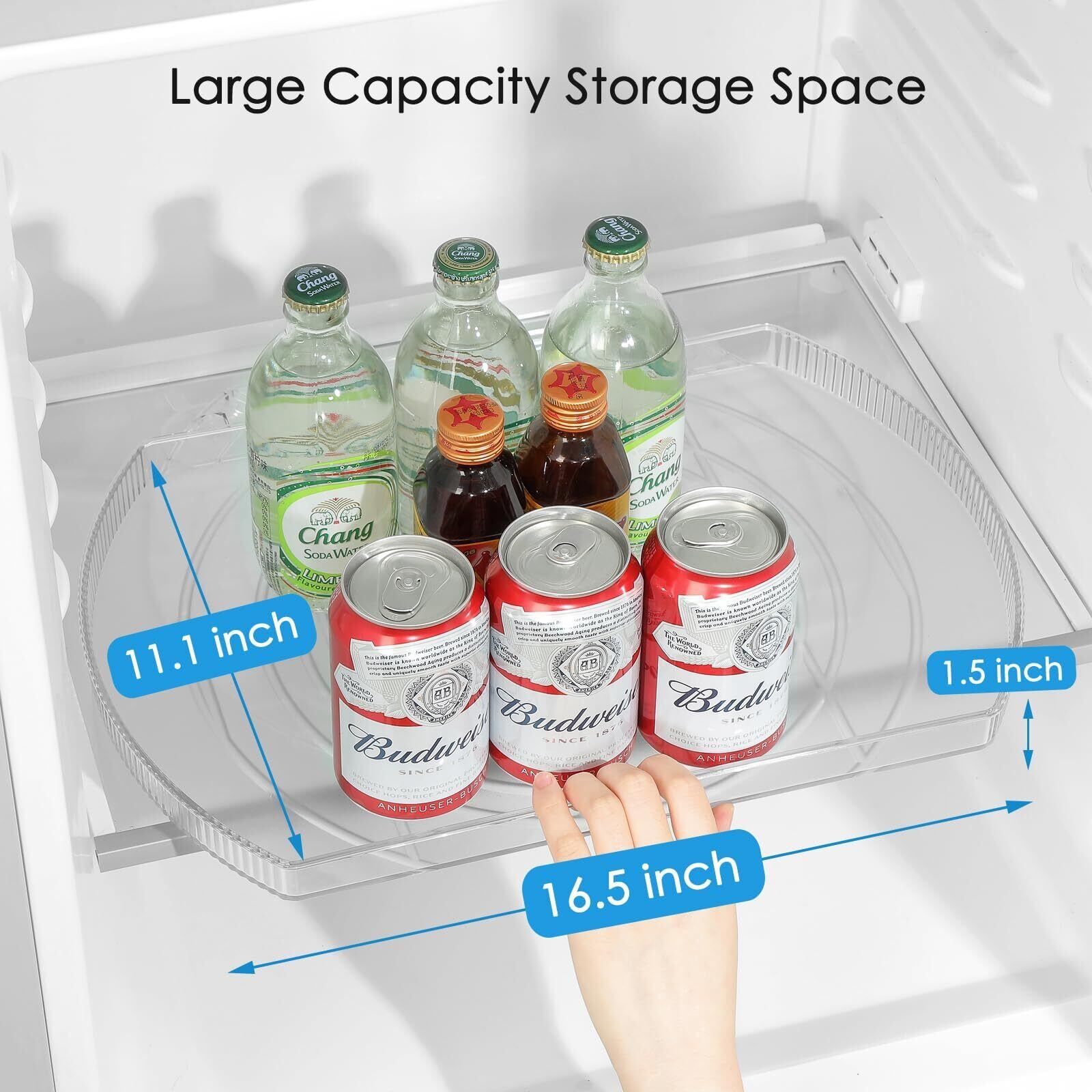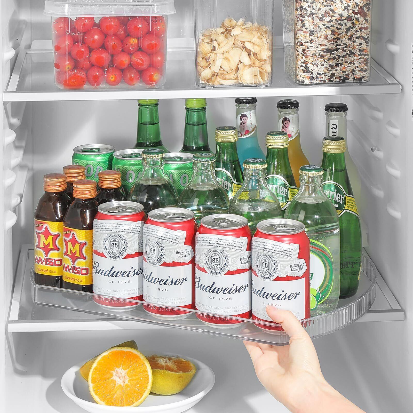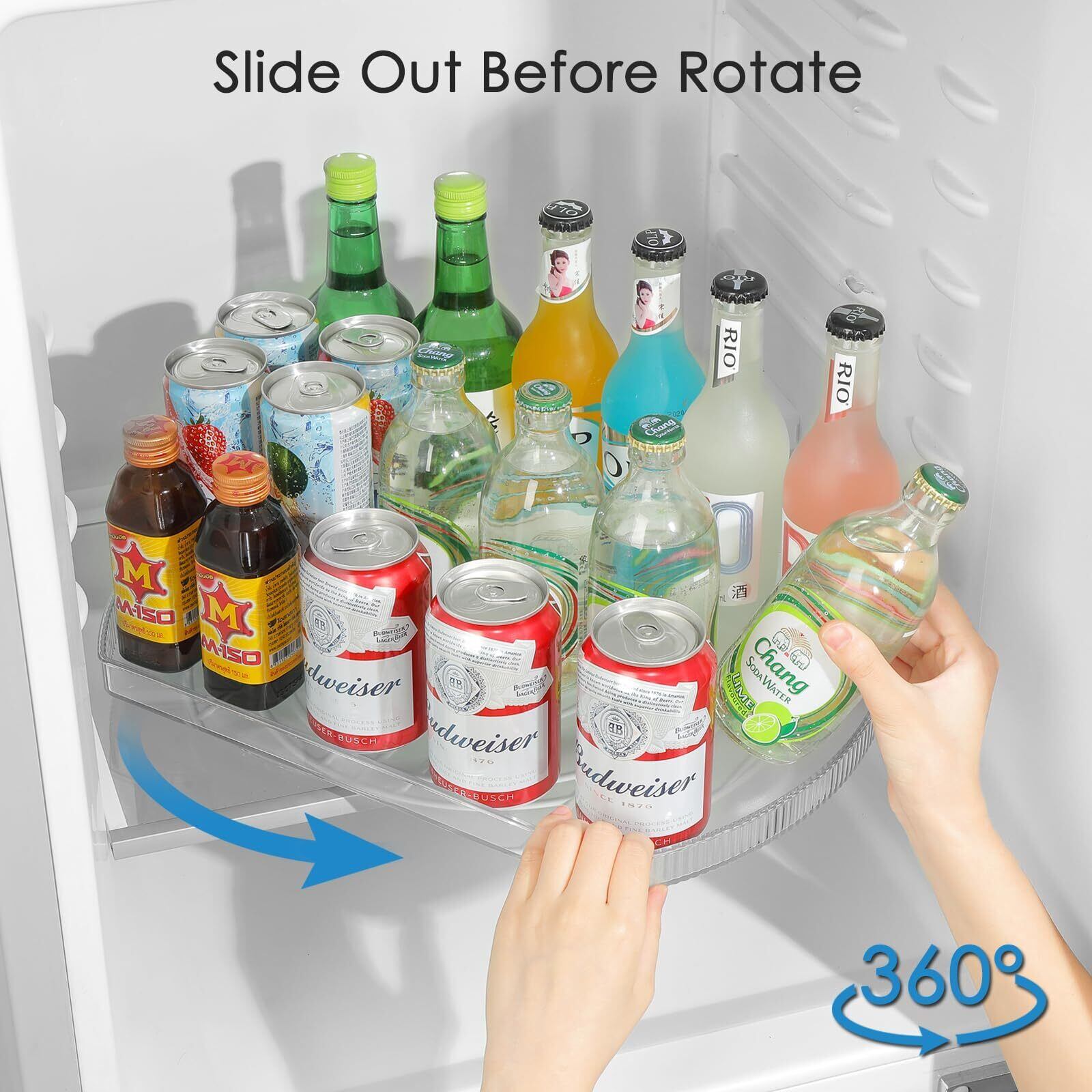 冷蔵庫用回転式収納ラック, 360度回転可能, 長方形16.54x11.03インチ (42x28cm), 20缶収納可能, 滑り止め吸盤付き, 引き出し式ターンテーブル