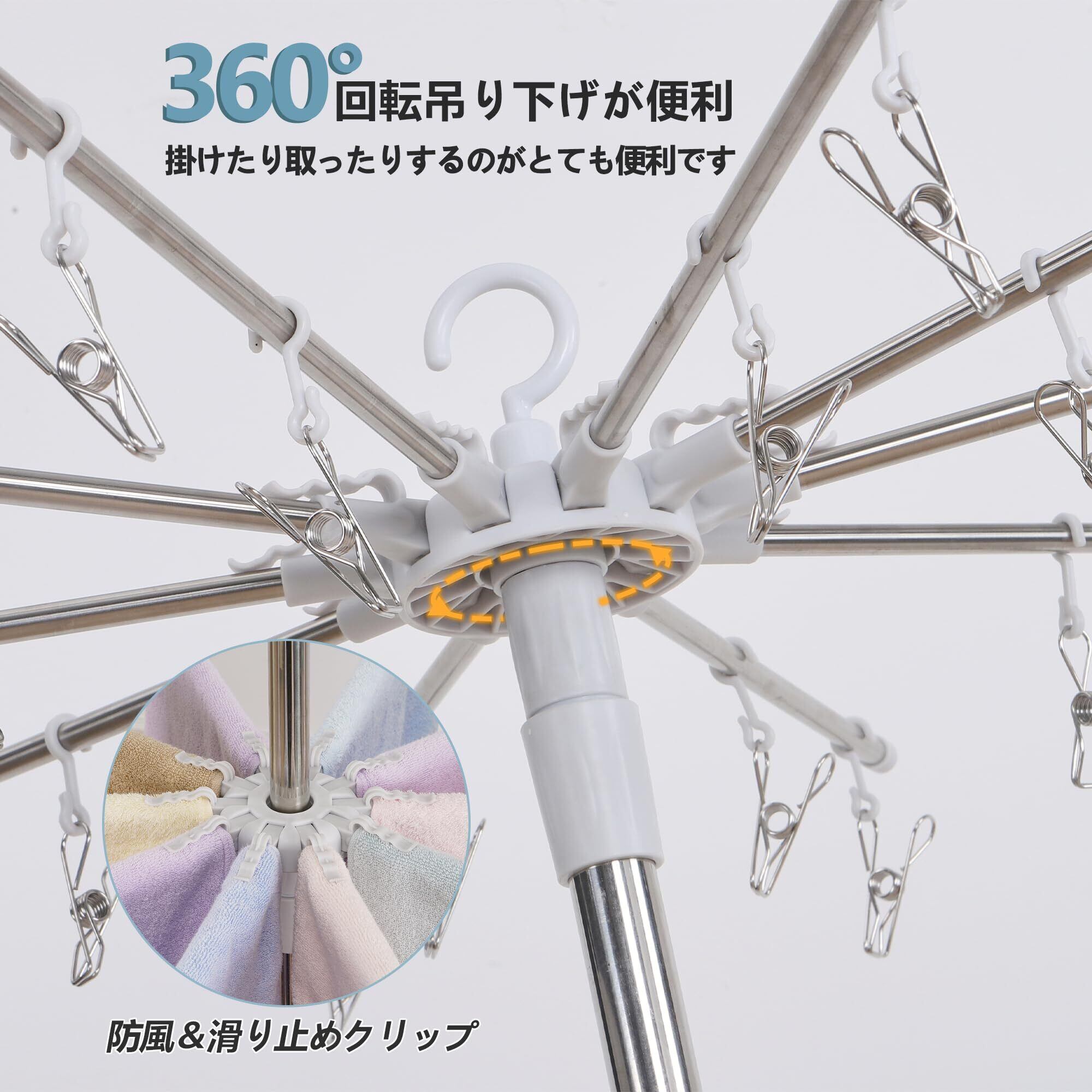 【折りたたみ可能】省スペースな折りたたみ式で、使わない時はパラソルを閉じるだけでコンパクトに折りたためます。狭いアパートや収納スペースが限られている家庭でも邪魔になりません。収納場所に困らず、必要なときだけ広げて使える便利さがあります。場所を取らない 物干しハンガーです。