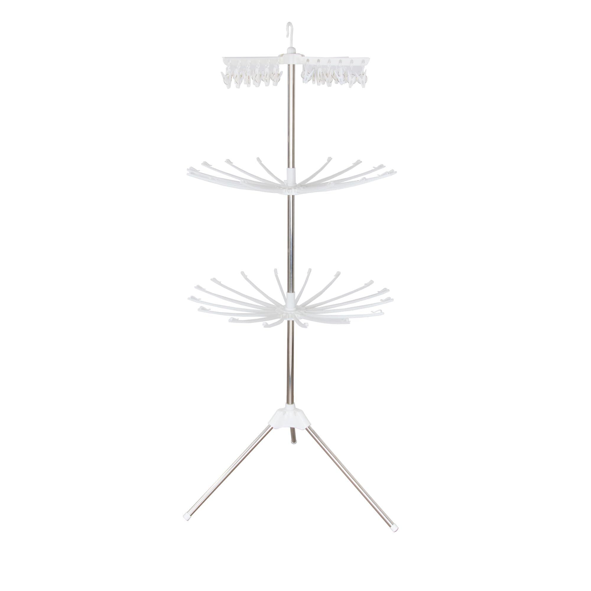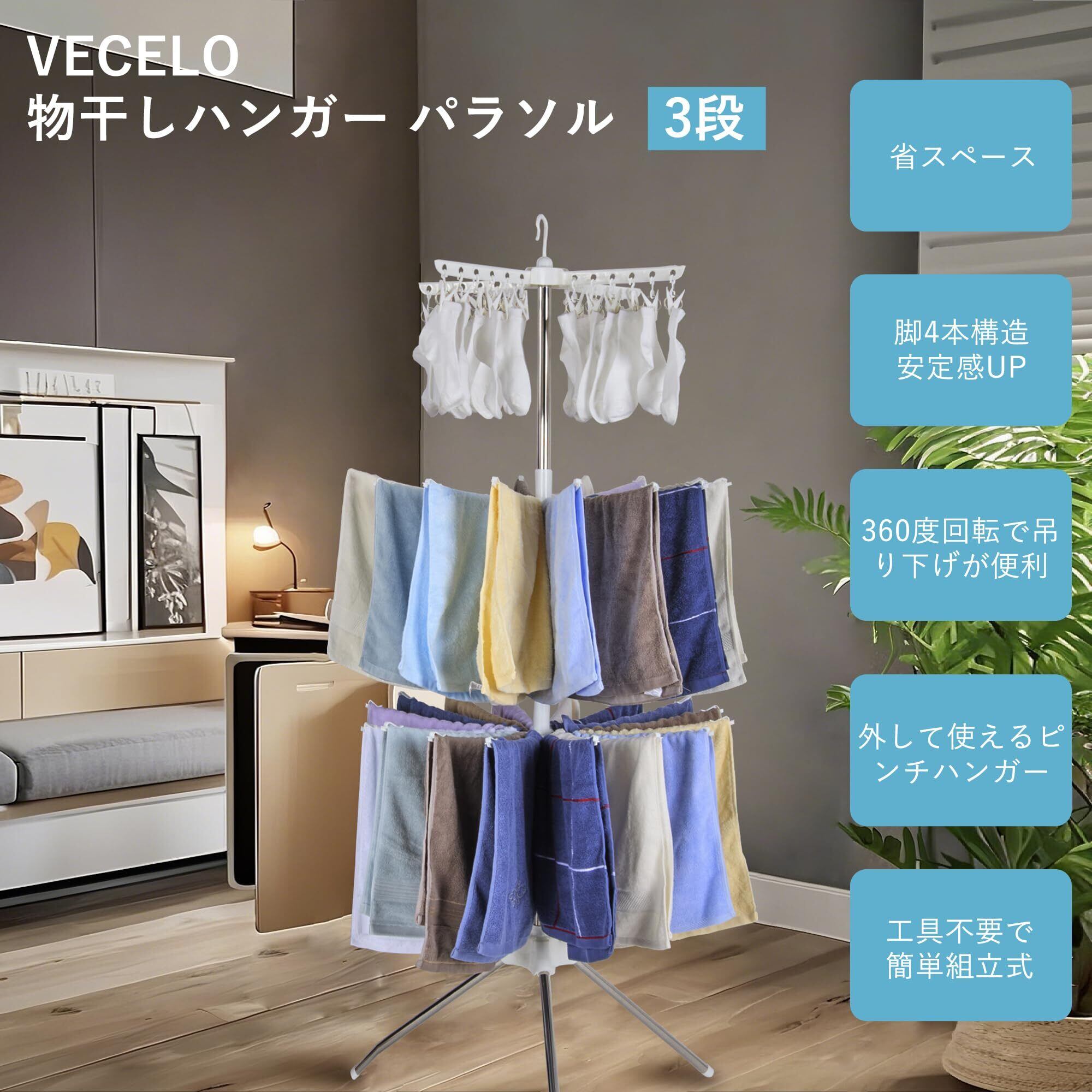 VECELO 物干しハンガー スタンド型 3段 約直径66×高さ168cm 折り畳み式 物干しラック パラソル洗濯物干し コンパクト 省スペース 使いやすい 屋外/室内 シンプル ホワイト