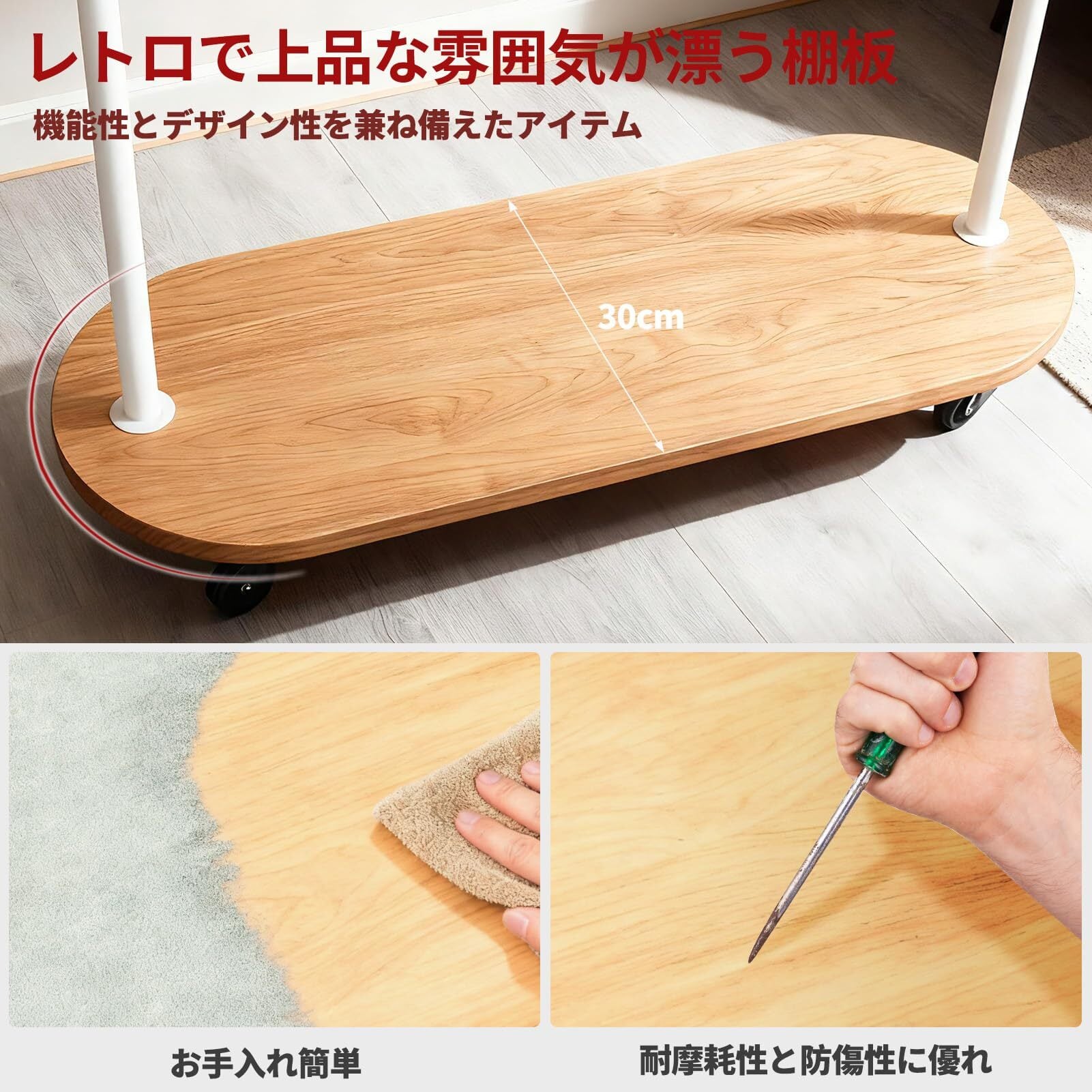 【軽やかに移動 & コンパクト設置】4つのキャスター(車輪)付きで、重いコートを何枚かけていても軽々移動可能。お掃除の時やお部屋の模様替えも簡単です。スリムなフレーム設計(奥行30cm)のため、一人暮らしのワンルームや狭いスペースの隙間にもぴったり収まり、どこでも使いやすいハンガーラック。キャスターにはストッパー付きで、静止時はしっかり固定されます。