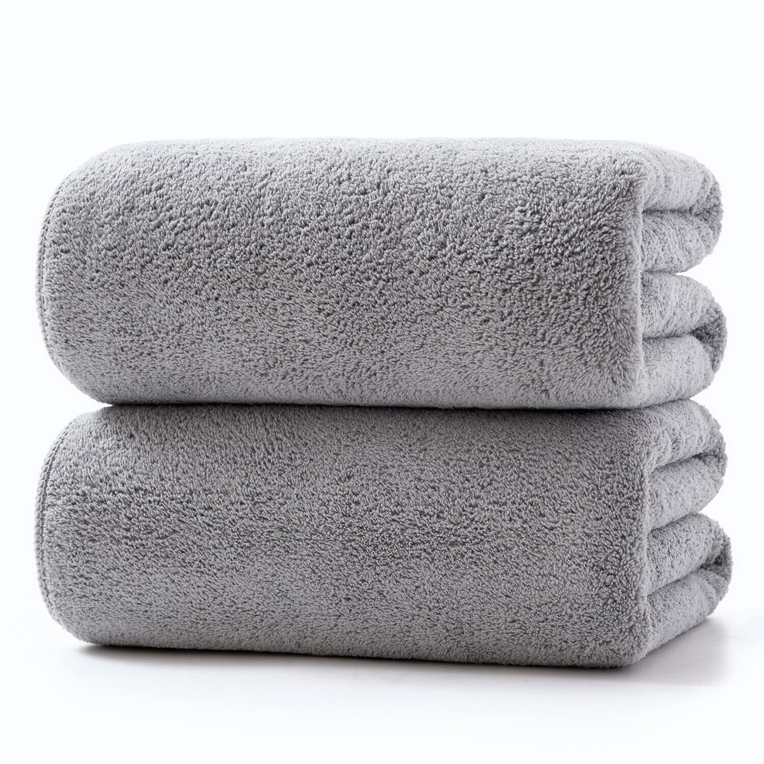 【バスタオル 4枚セット】サイズ:約70×140cm、重量:約300g(1枚あたり)セット内容: ライトグレー2枚。出張、旅行、入浴、ご家族皆さんが満足できます、様々な場合で活躍。