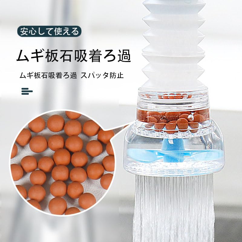 蛇口フィルタースパッタリング防止フィルターキッチン浄水フィルター引張可能360°回転調節可能麦板石フィルター(2点セット)