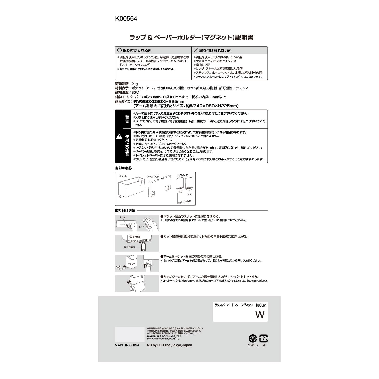 レック ラップ & ペーパーホルダー ホワイト (ラバーマグネット) 耐荷重2kg 海外製大型ロールペーパー対応