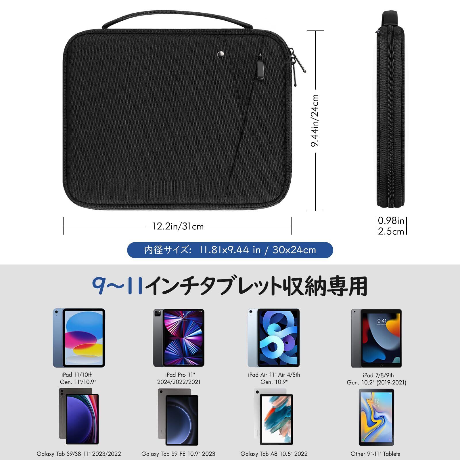 MoKo タブレットケース 9-11インチまでの端末対応 周辺機器小物収納 大容量収納 ポリエステル素材 耐摩耗 衝撃緩和 出し入れ簡単 iPad Air M3/M2 / 11世代 A16 2025 / 10世代 10.9 / Pro11 M4 / Surface Go10/Chromebook等対応 Black