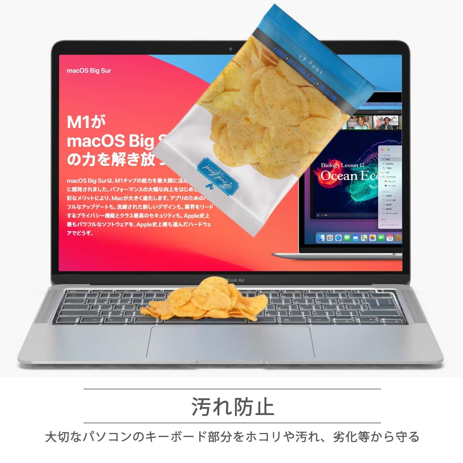 【2020年11月最 M1チップ 搭載 モデル】Macbook Air 13 2020 A2337/A2179用 キーボードカバー 日本語JIS配列 極薄 高い透明感 防水 防塵 耐磨 マックブック エアー 13インチ 保護 フィルム