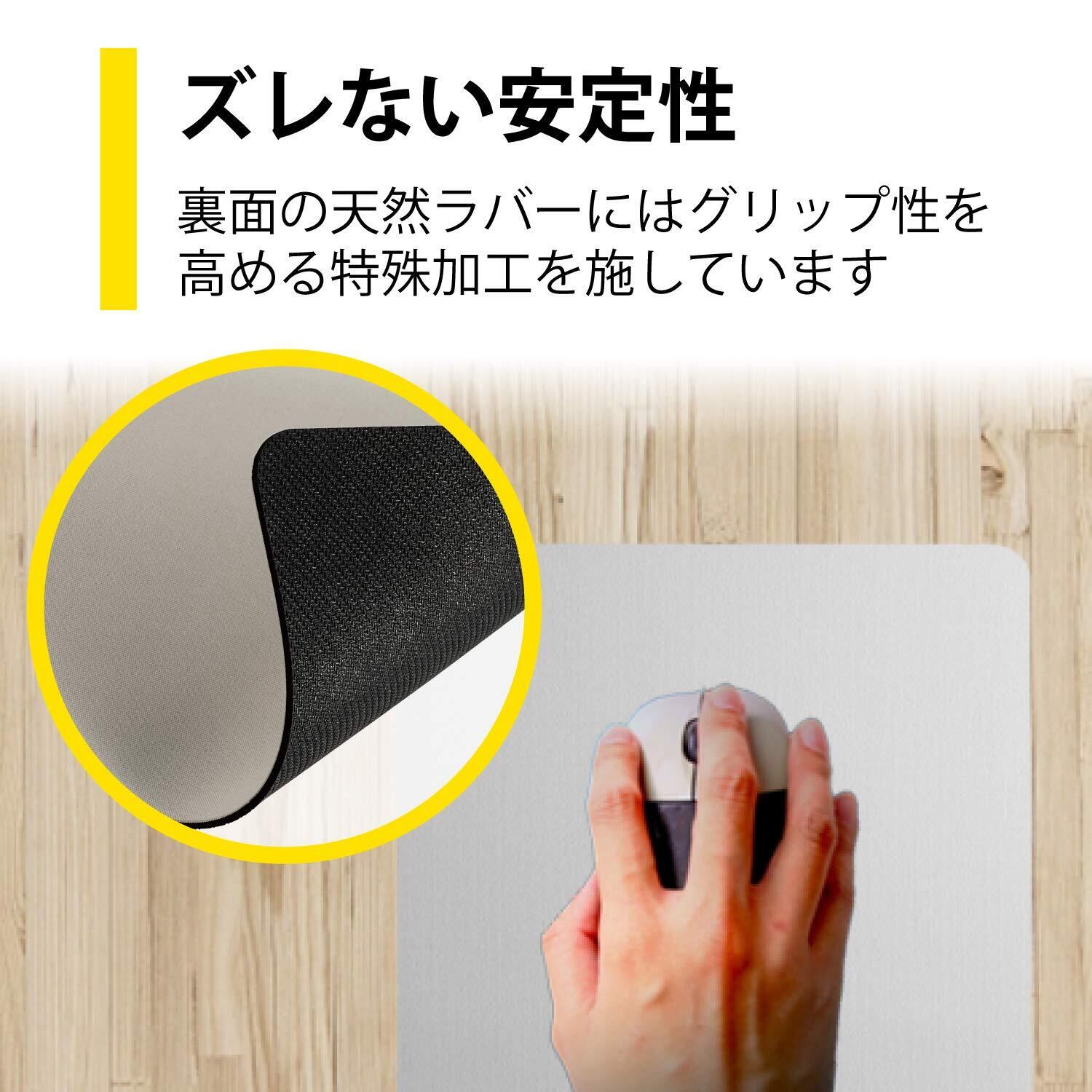 ●表面にはスムースクロスを採用し、マウスが滑りすぎないほどよいグリップ感のポリエステルクロスを採用したシンプルマウスパッドです。●マウスが原因のデスク天板への傷を防ぎます。●マウス操作の範囲/方向に合わせて、縦向きでも横向きでも使用できます。●クッション性のある天然ラバー素材によって、デスクと手の間に生じる圧力を分散し、負担を軽減します。●裏面の天然ラバーにはグリップ性を高める特殊加工を施し、デスク上でズレない安定性を実現しています。●幅230mm×奥行180mmでオフィスや自宅など様々な場所で使用できる標準サイズです。●BlueLEDマウス、レーザーマウス、光学式マウスなどすべての読み込み形式のマウスに対応しています。●※ご使用になるマウスの仕様や個体差により、一部正常に動作しない場合があります。