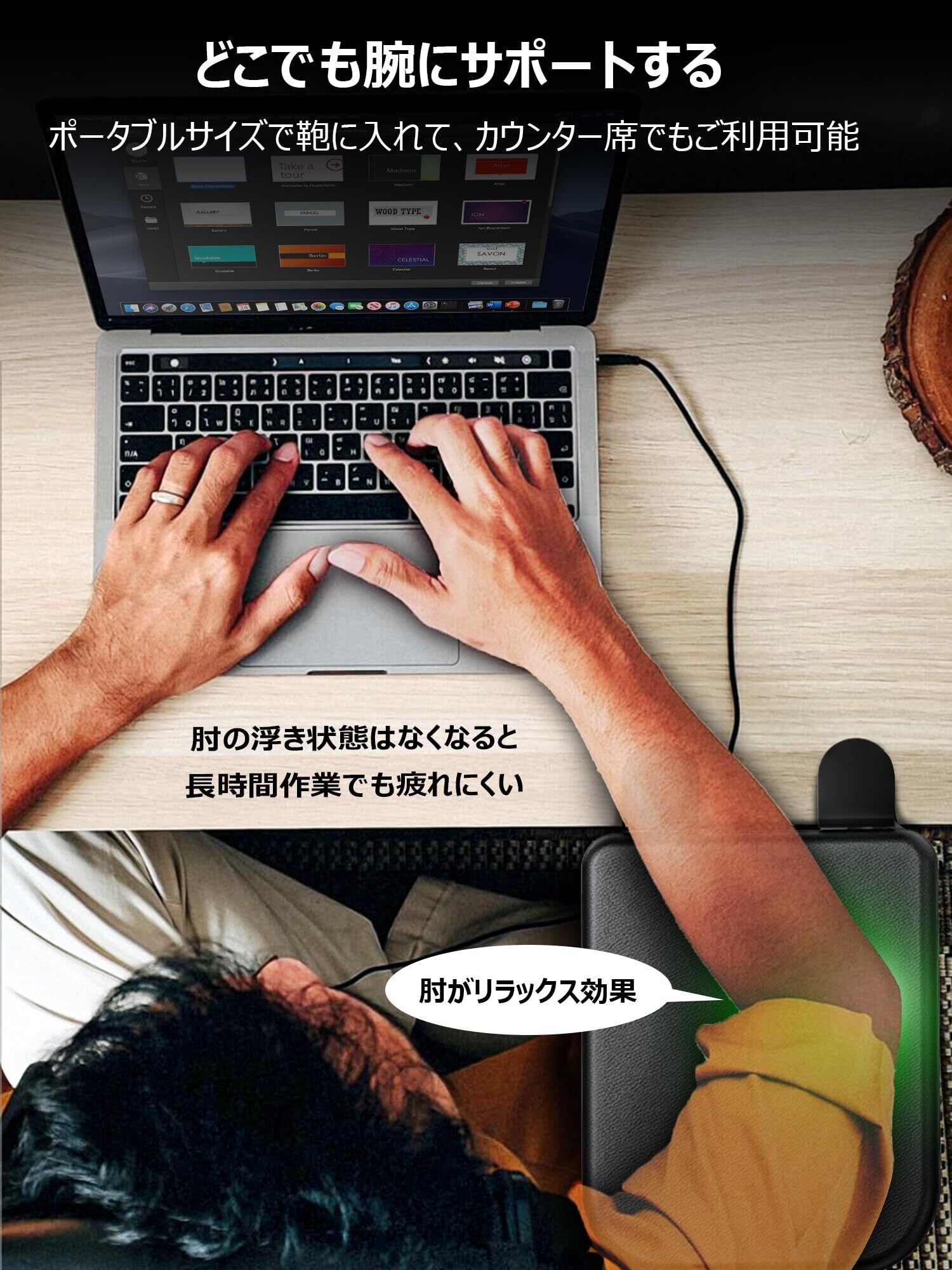 【人間工学 デザイン】①目とディスプレイの距離を自然に保ち。②人体構造をもっと相応しい、肩・肘に優しく、肩こり・痛み・疲労。肘置き デスク アームレスト、肘置き クッション