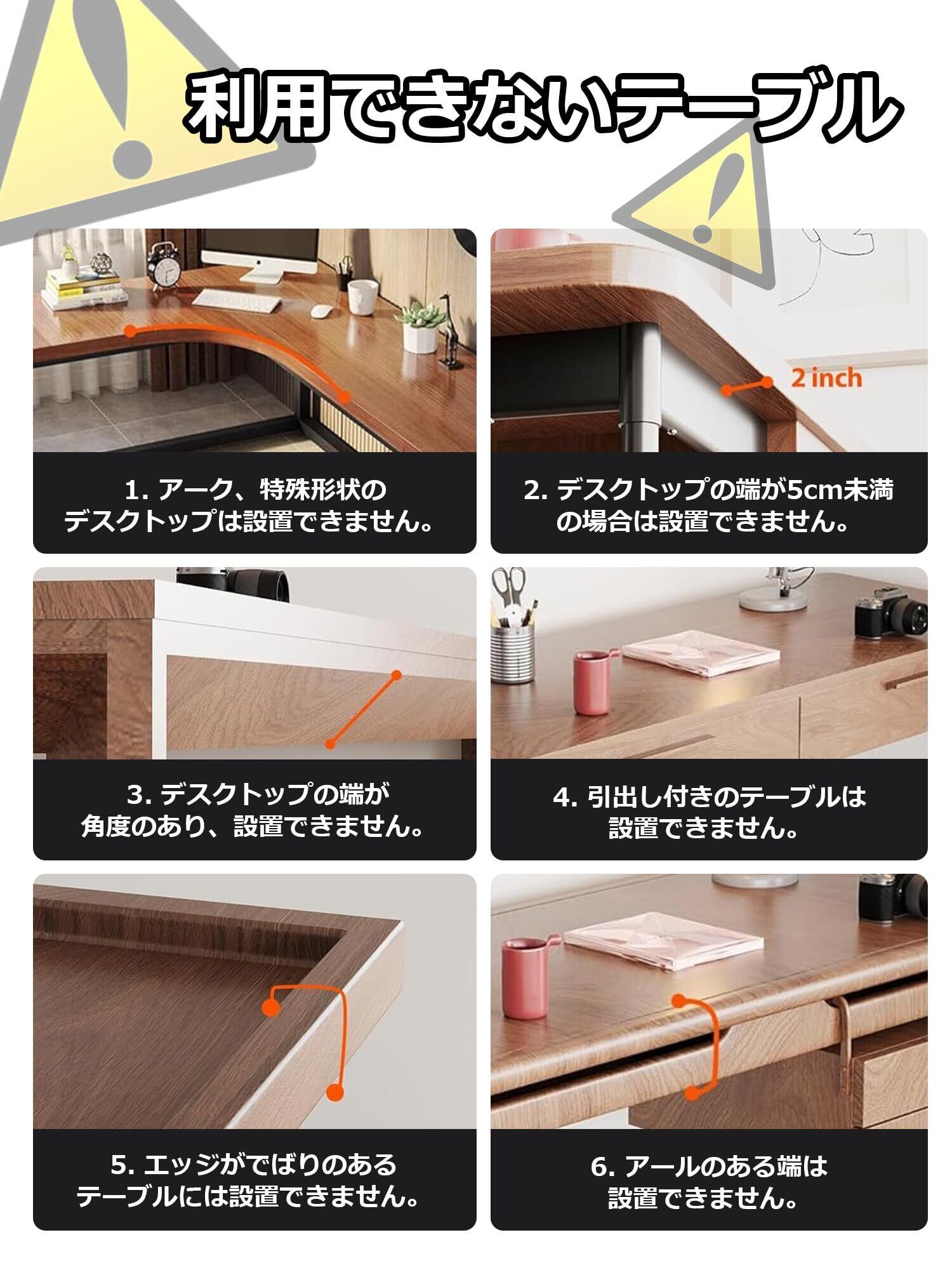 【穴あけ不要】机の端にはさむだけのクランプ式で、金属の金具で、設置・取り外すも簡単です。注:天板の厚さは1-6cmが必要です。