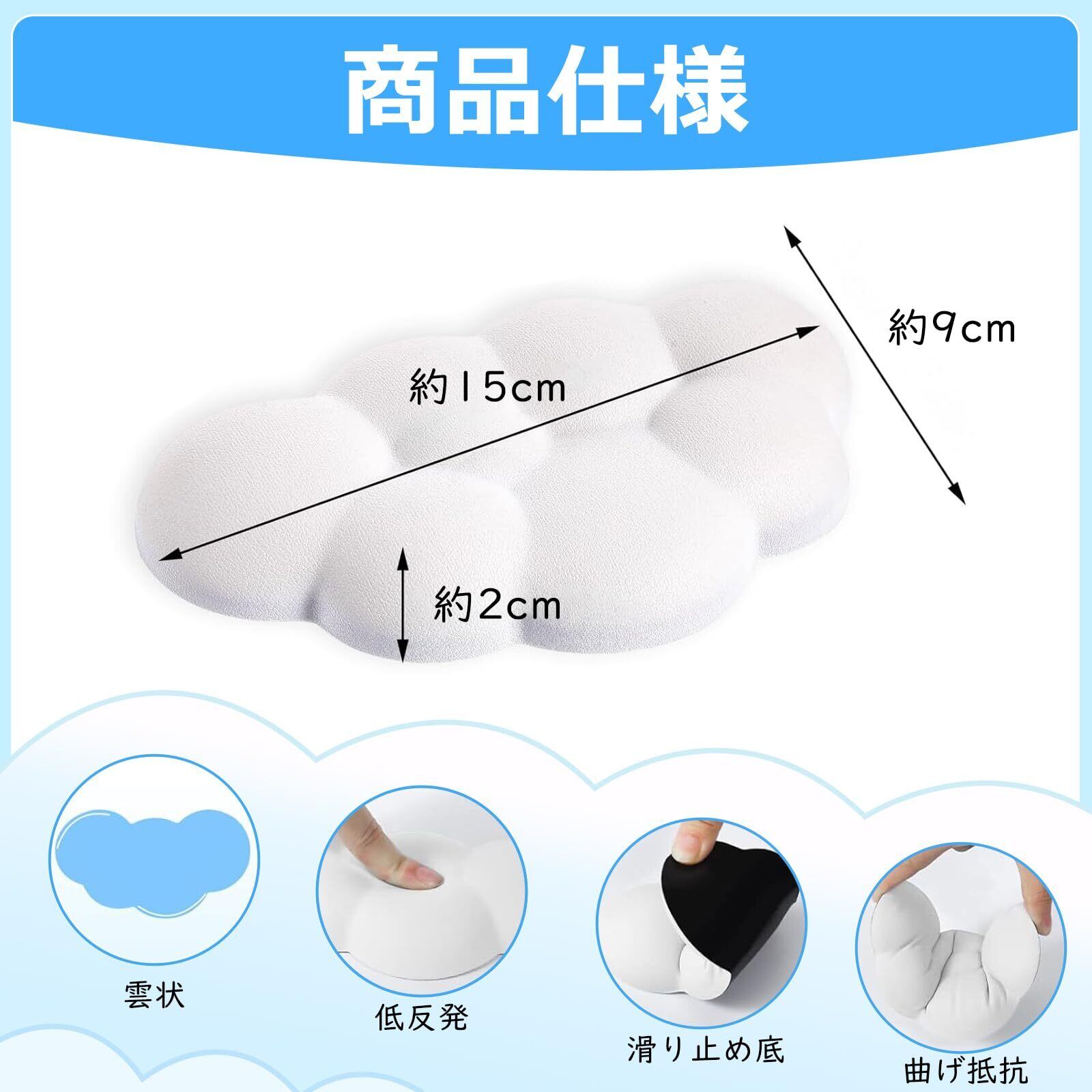 Anboli マウス手首クッション マウスリストレスト キーボード クッション雲状手首 パームレスト 人間工学デザイン 低反発 柔らかいパッド 疲労を軽減 手首置き 滑り止め コンピュータ ラップトップ オフィスワーク PCゲーム 1個(ホワイト)