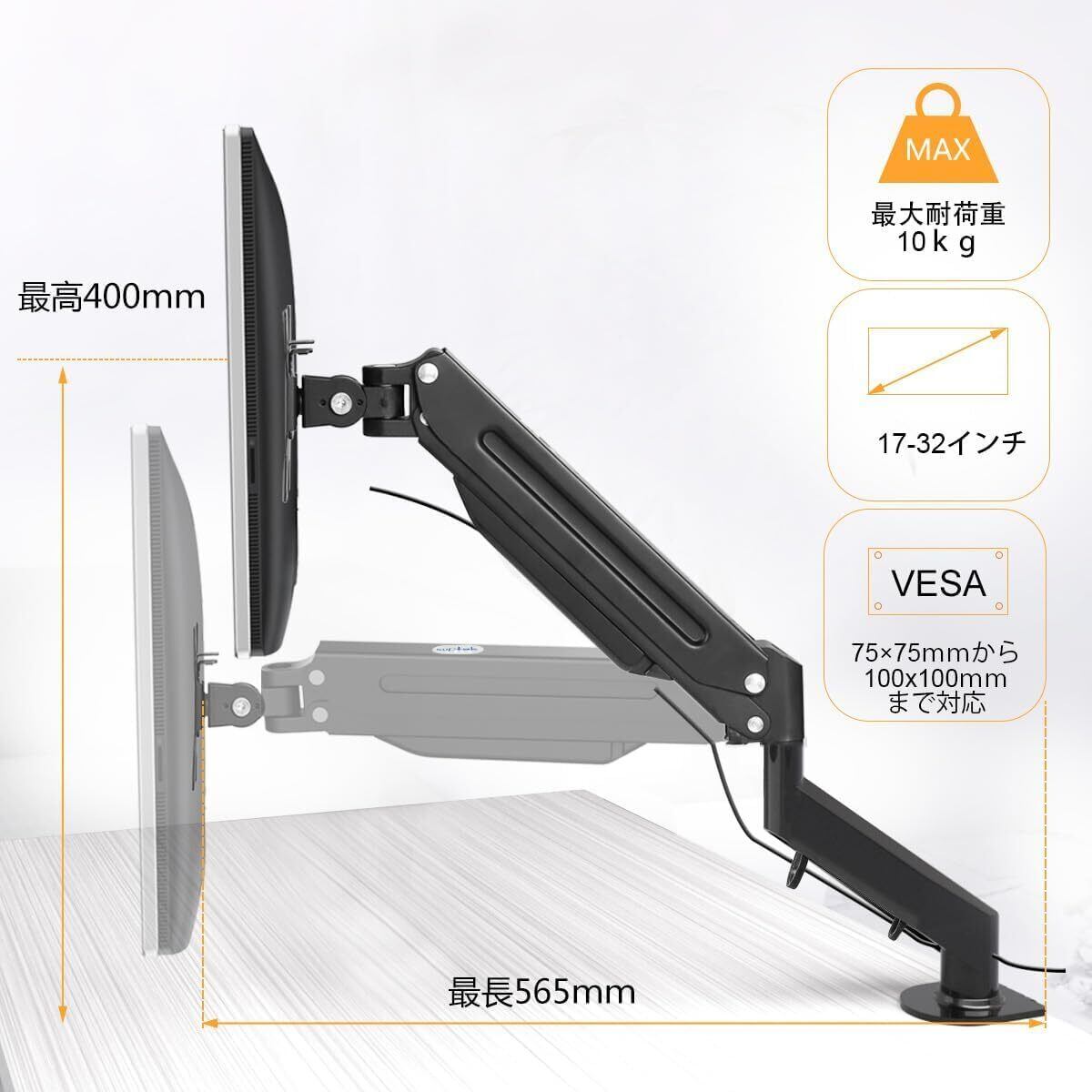 Suptek PC モニター アーム 液晶ディスプレイ アーム ガススプリング式 ガス圧式 モニタースタンド17~32インチ対応 最大耐荷重10kg 黒い MD81