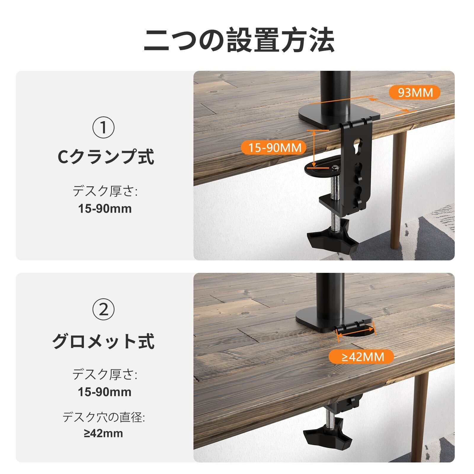 【商品仕様】15インチから32インチまでの液晶ディスプレイに対応できるモニターアームです。対応規格:VESAマウントインターフェース規格(FPMPMI)75mm/100mm 、耐荷重は1-10KGです。