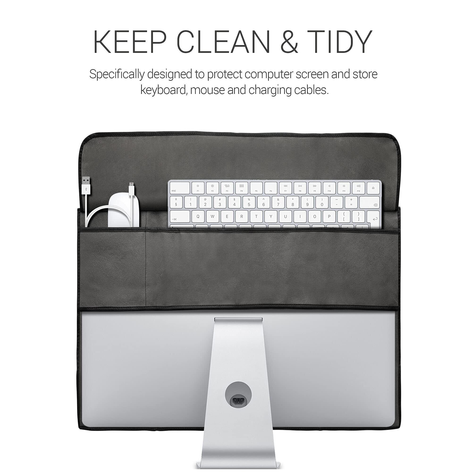 シンプルで機能的なデザイン: 大きく開いた開口部によりスムーズに着脱可能、アンチダスト性能によりいつまでもキレイに、シンプルなデザインに便利な収納ポケット付き。kwmobileの液晶モニター保護カバーで快適なPCライフを。
