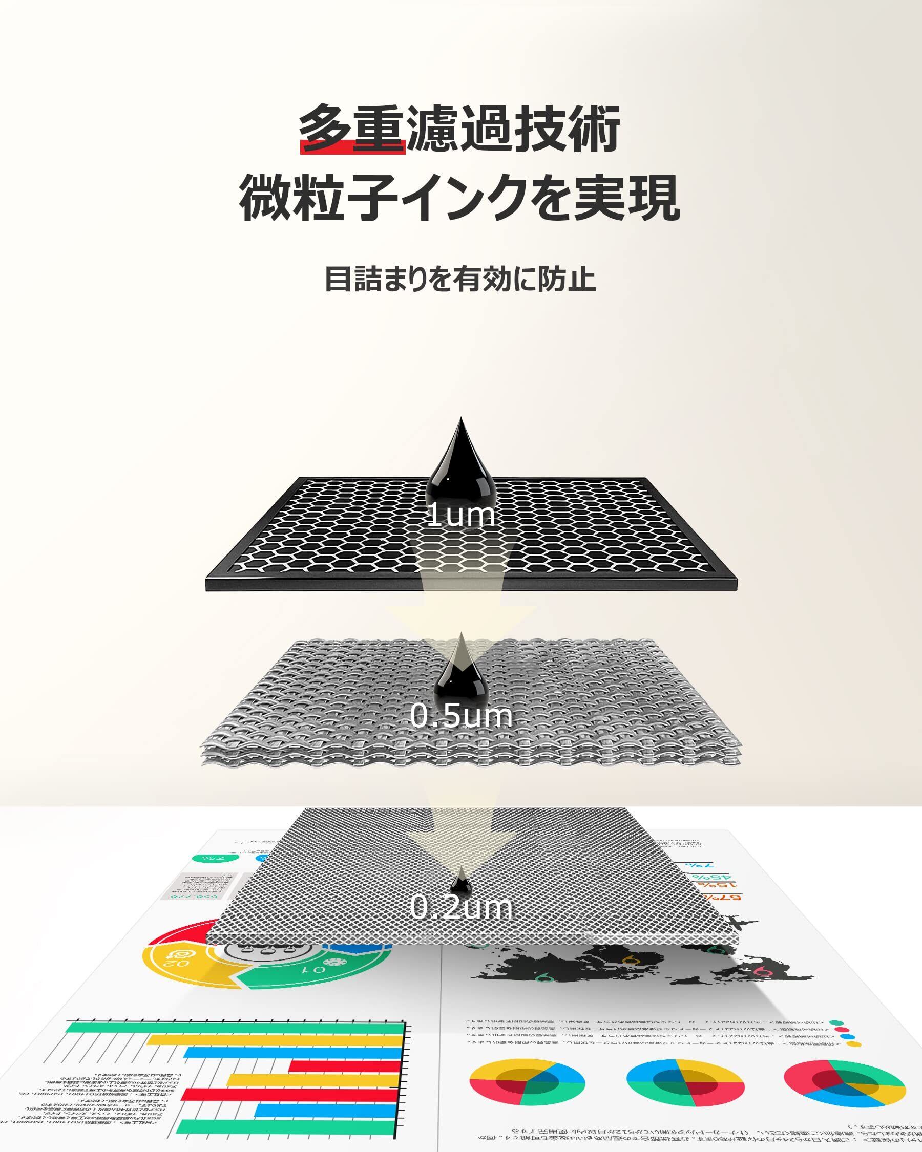 【染料を採用】の LC3111 互換インクは染料インクを採用しています。染料インクとは、拡散係数が低いため、飽和度が高く鮮明な印刷効果を再現します。また、その表面張力特性により、用紙の表面にインクが吸収されやすいため、印刷品は光沢の維持が可能になります。