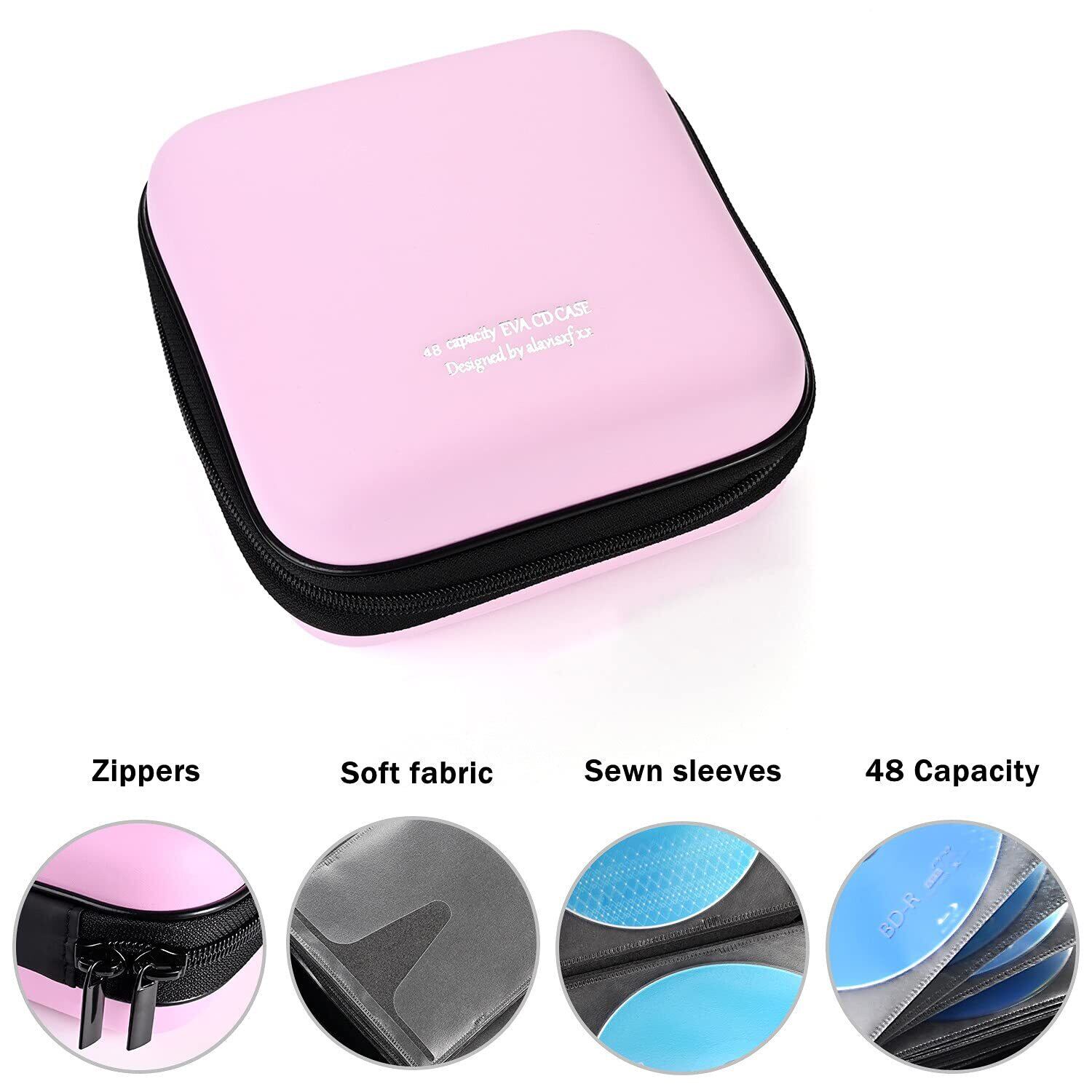 LIOVODE 48枚収納 CDケースポータブルEVA blu-ray ディスク収納ケース 大容量 DVD/VCD 収納 (48枚, ピンク48)
