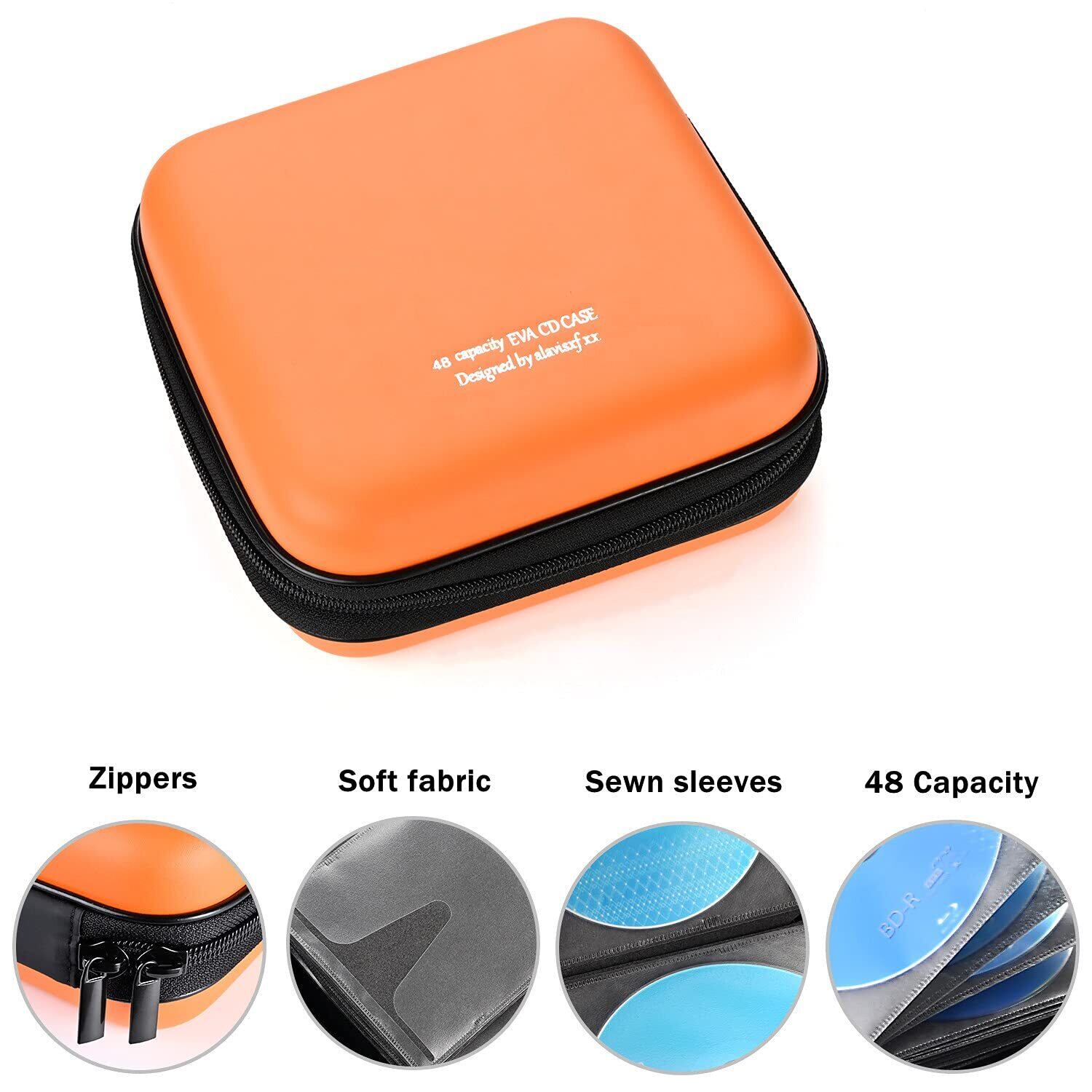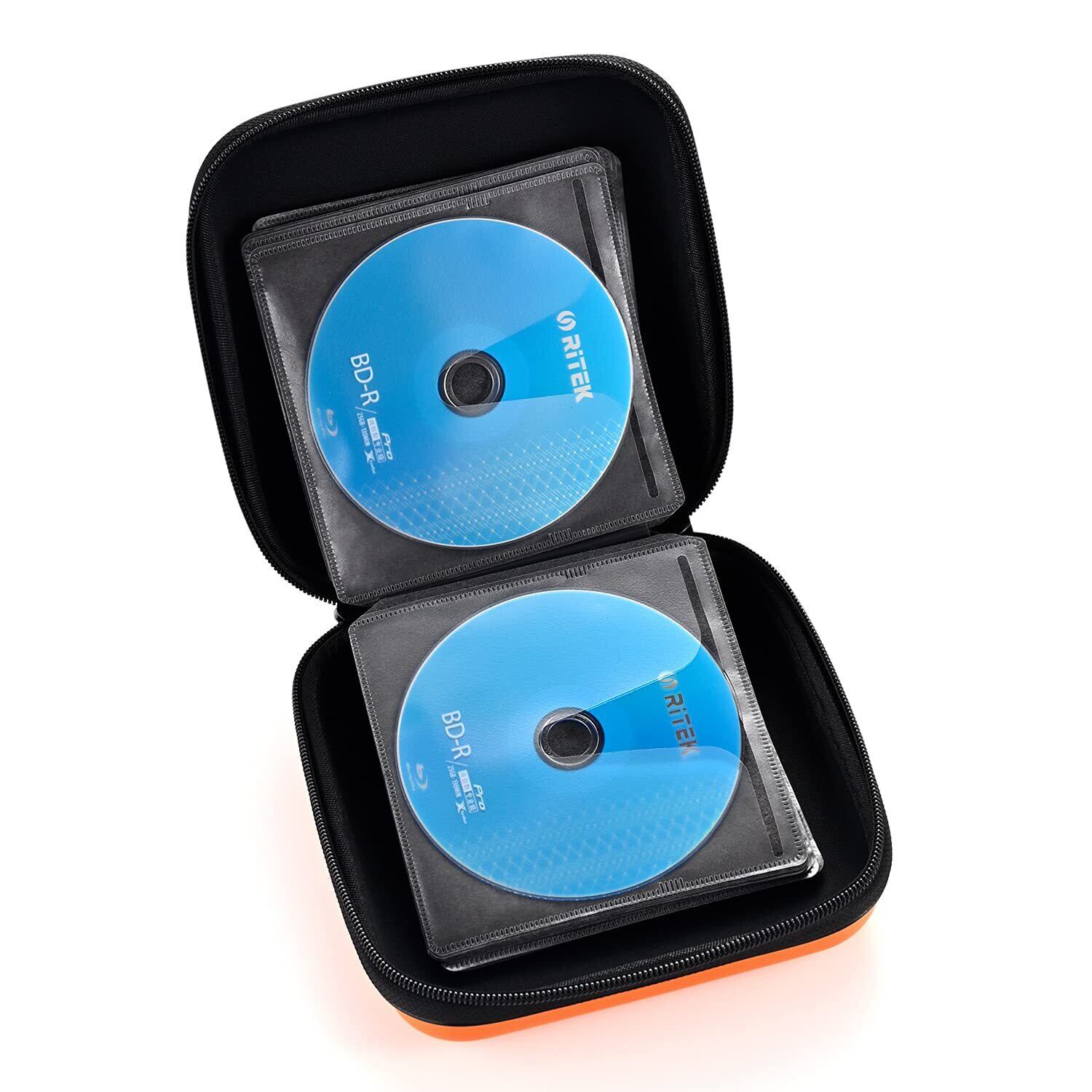 LIOVODE 48枚収納 CDケースポータブルEVA blu-ray ディスク収納ケース 大容量 DVD/VCD 収納 (48枚, オレンジ色 48)