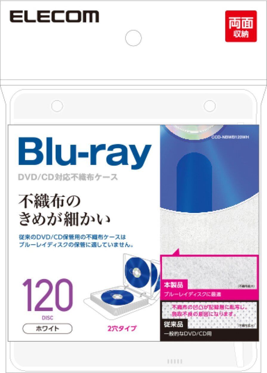 エレコム DVD CDケース 不織布 両面収納 2穴付 60枚入 120枚収納可 ホワイト CCD-NBWB120WH