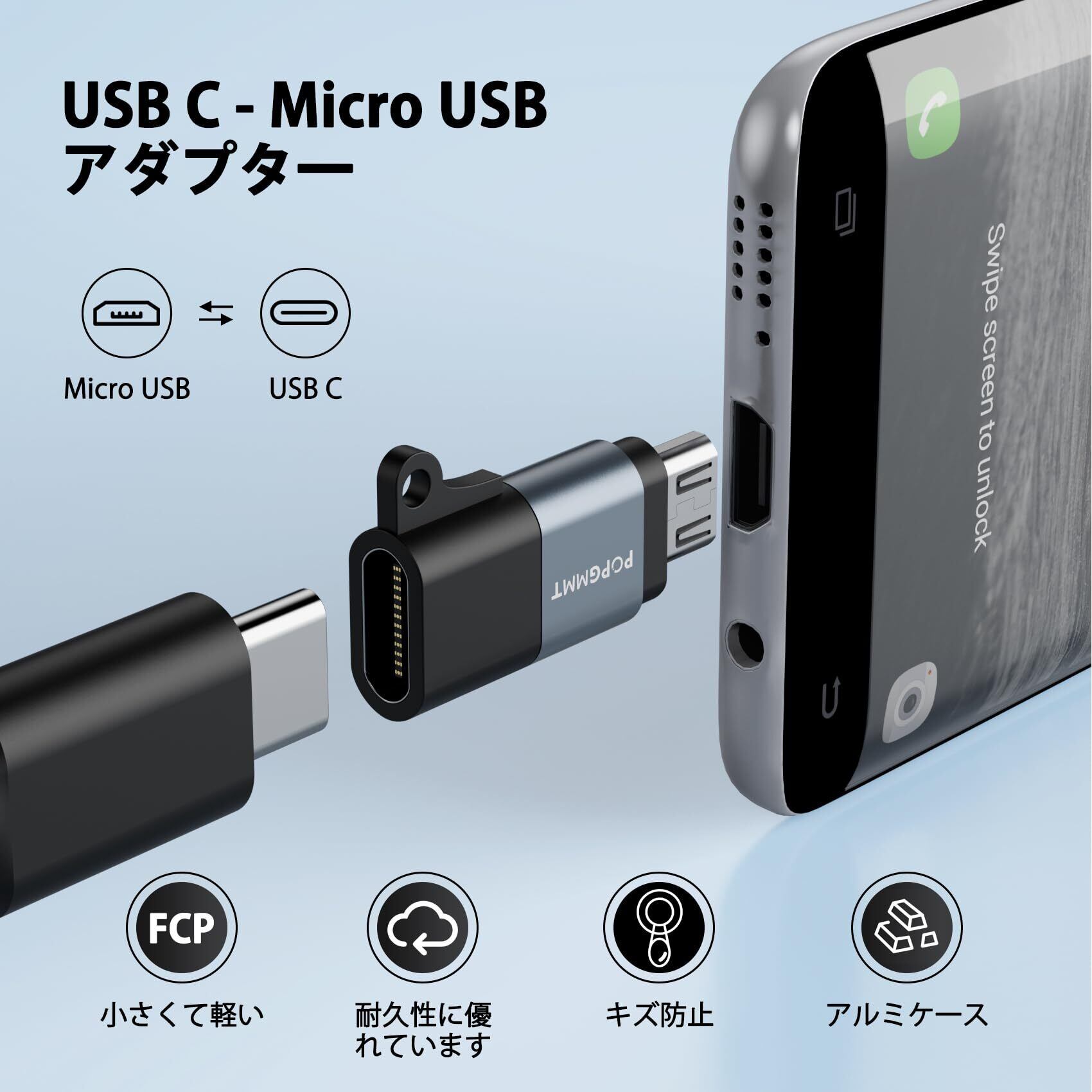 【耐久性抜群】充電中の安全性&安定性を確保するために、マイクロ USB 変換コネクタインターフェースに56kΩ抵抗レジスタを内蔵し、充電やデータ転送中の安全を確保出来ます。POPGMMTマイクロ usb タイプc 変換はアルミニウム合金にニッケルめっきされており耐熱・耐腐食性に優れているだけでなく20000回の抜き挿し試験をクリアしていますので安心してお使いいただけます。精密なコネクタにより、スムーズに抜き差すことが可能です。インターフェースは平らで、ぴったりとフィットし、緩みません。自宅、職場、旅行などいろんな場所で大活躍しています。