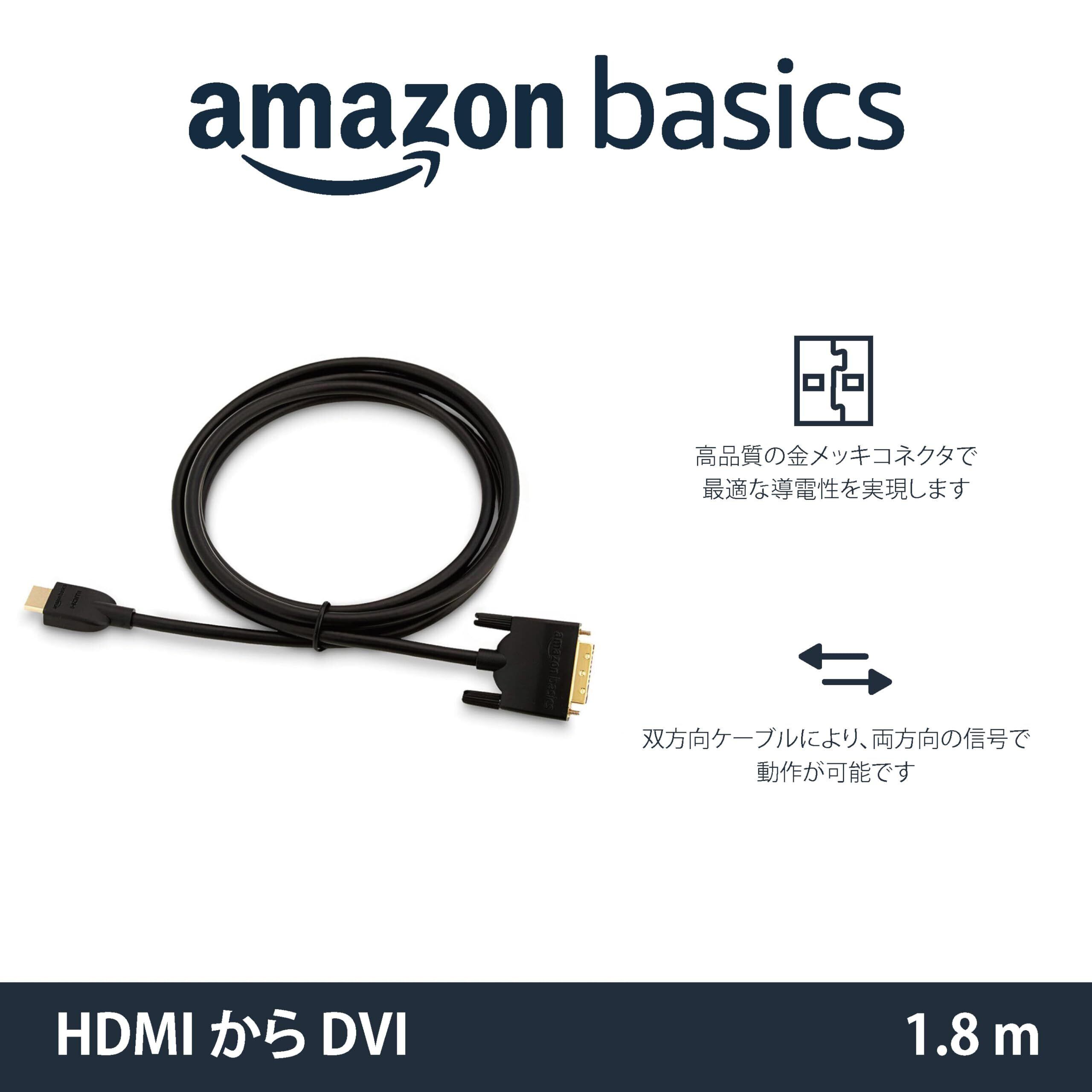 ベーシック HDMI A - DVI (オス) 変換ケーブル 双方向 ハイスピード 1.8m(タイプAオス - DVI24pinオス)1080P 金メッキ加工 テレビ用 1本 ブラック