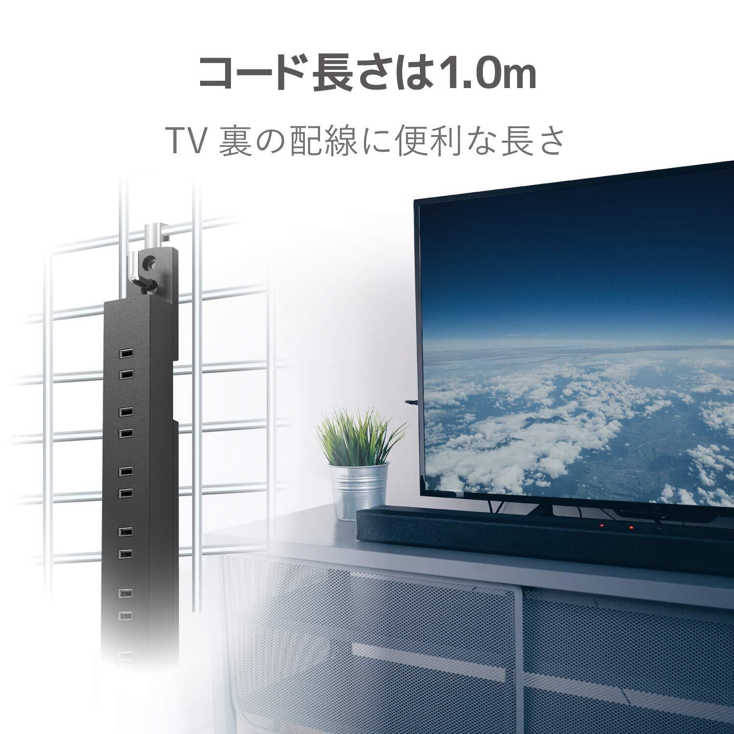 エレコム 電源タップ 雷ガード 10個口 1m ほこりシャッター 【 固定 ・吊下可能な回転パーツ付き】 ブラック ECT-0101BK