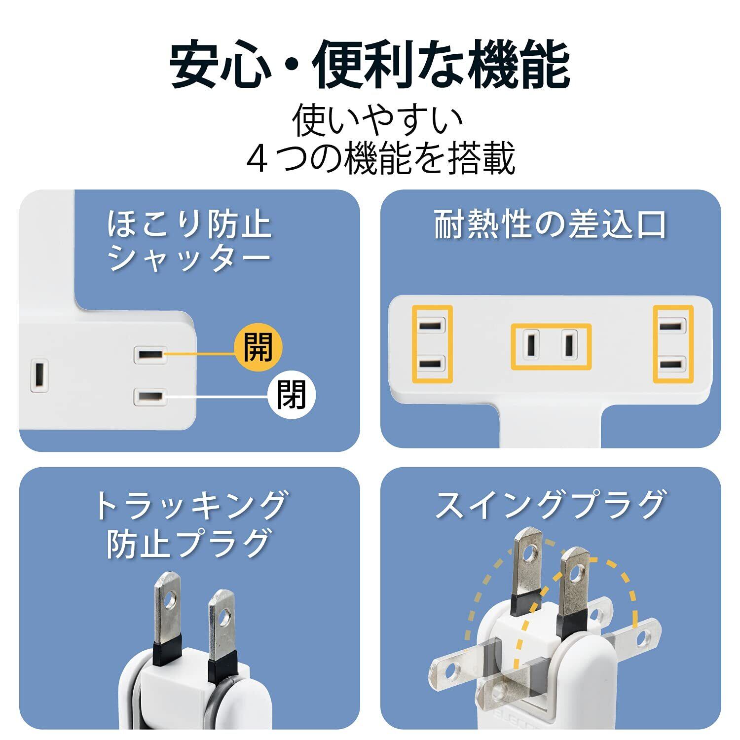 エレコム 電源タップ 雷ガード 3個口 クリップ ほこりシャッター付 スイングプラグ 3m ホワイト ECT-1430WH