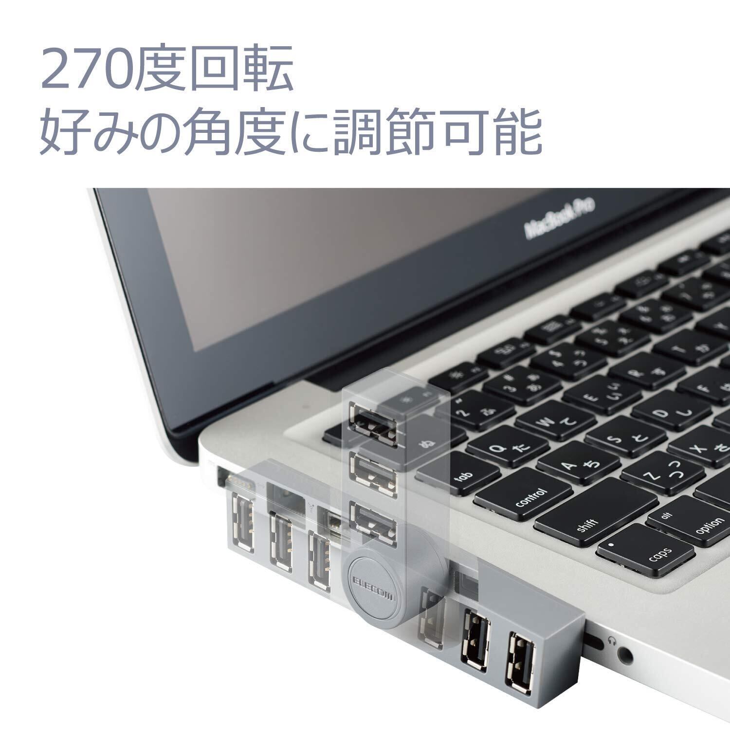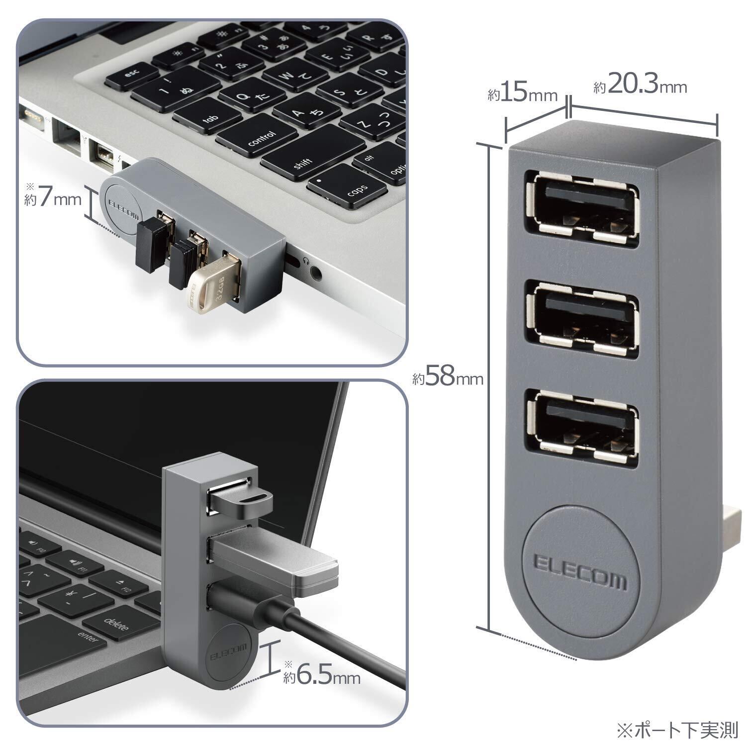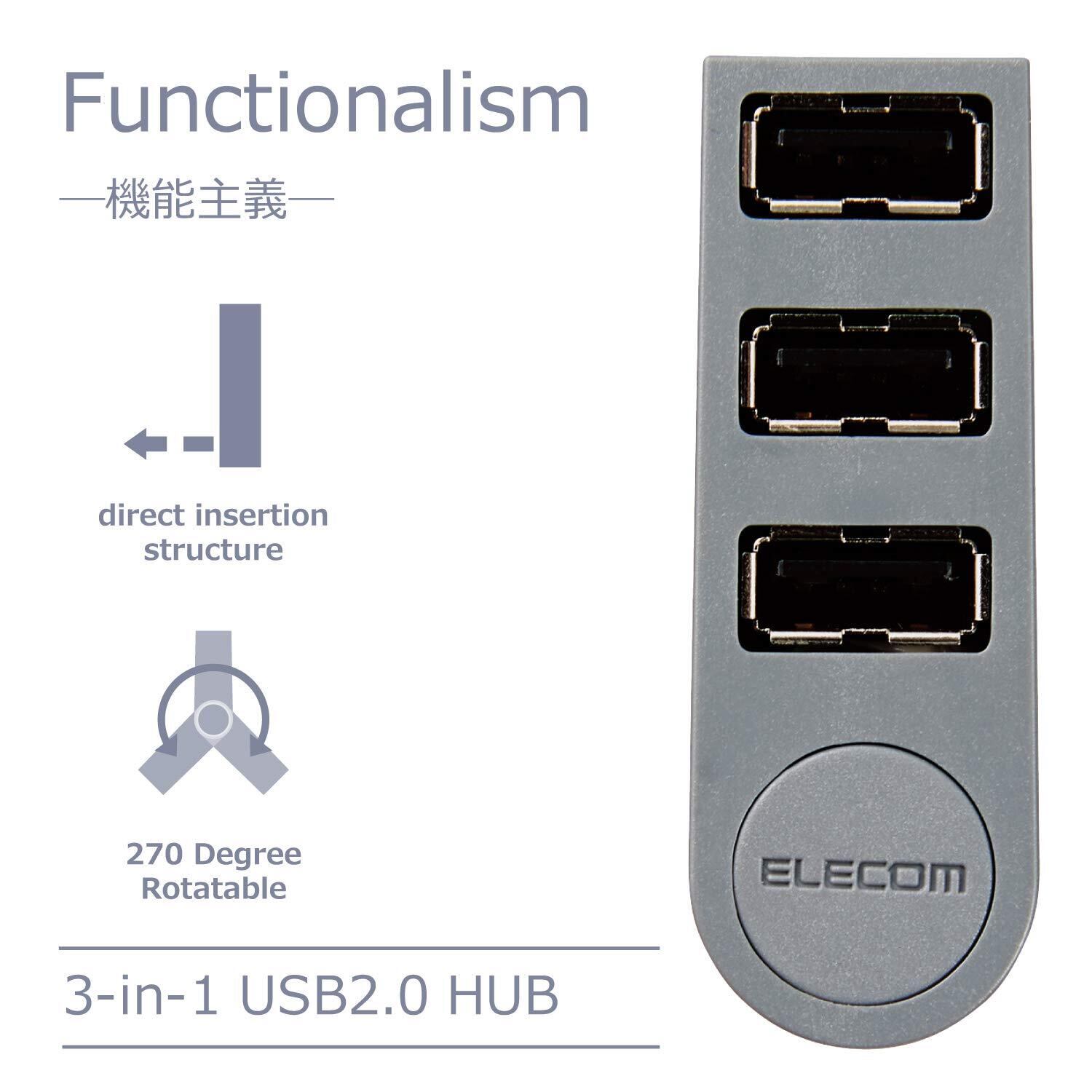 エレコム USBハブ U2H-TZ325BGY/EC USB2.0 Aポート×3 機能主義 直挿し グレー MacBook/Surface/Chromebook他 ノートPC対応
