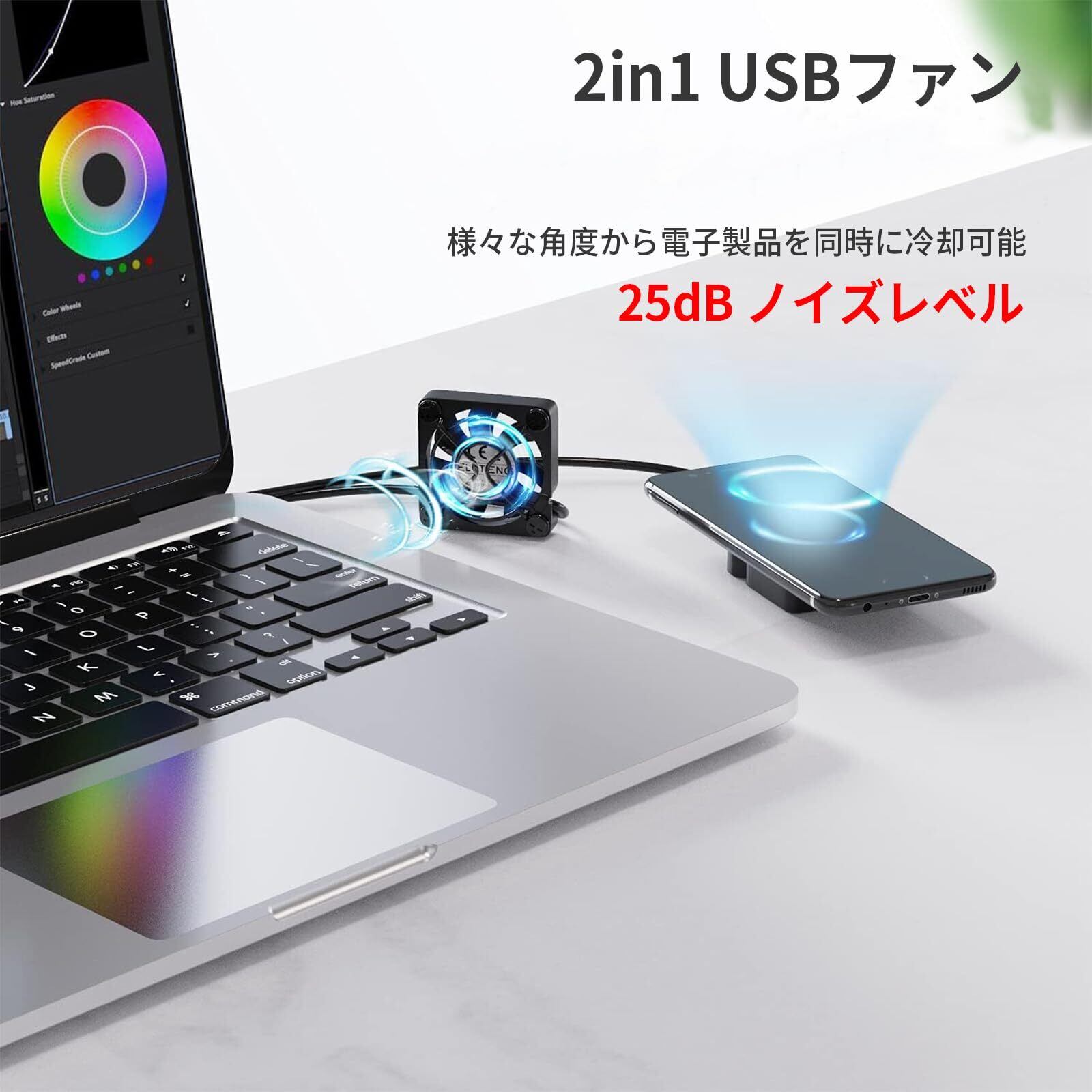 ELUTENG 小型ファン4cm 2連 USBファン 3段階風量調節 USB扇風機 2台1組 薄型 パソコン 電子デバイスの冷却 送風機 小型送風機 5V 長時間稼働可 Dual Usb fan 4cm