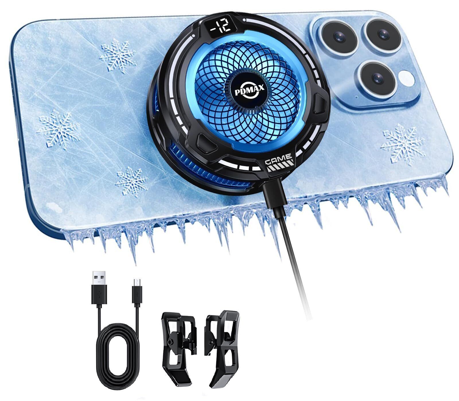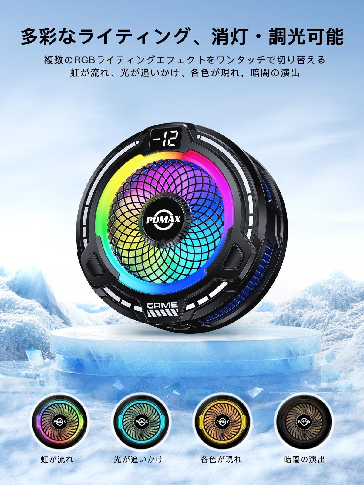 PDMAX スマホ 冷却ファン 磁気式/クリップ式2way AI知能 三段階調整 スマホクーラー USB給電式 急速冷却 RGBライトを搭載 スマホ熱対策 LED温度表示 ペルチェ素子 ゲーム/ライブ配信/写真撮影/動画視聴/テレワーク時に対応 マグネット式 原神 Tpye-c充電ケーブル付き 小型軽量 静音設計 (ブラック)