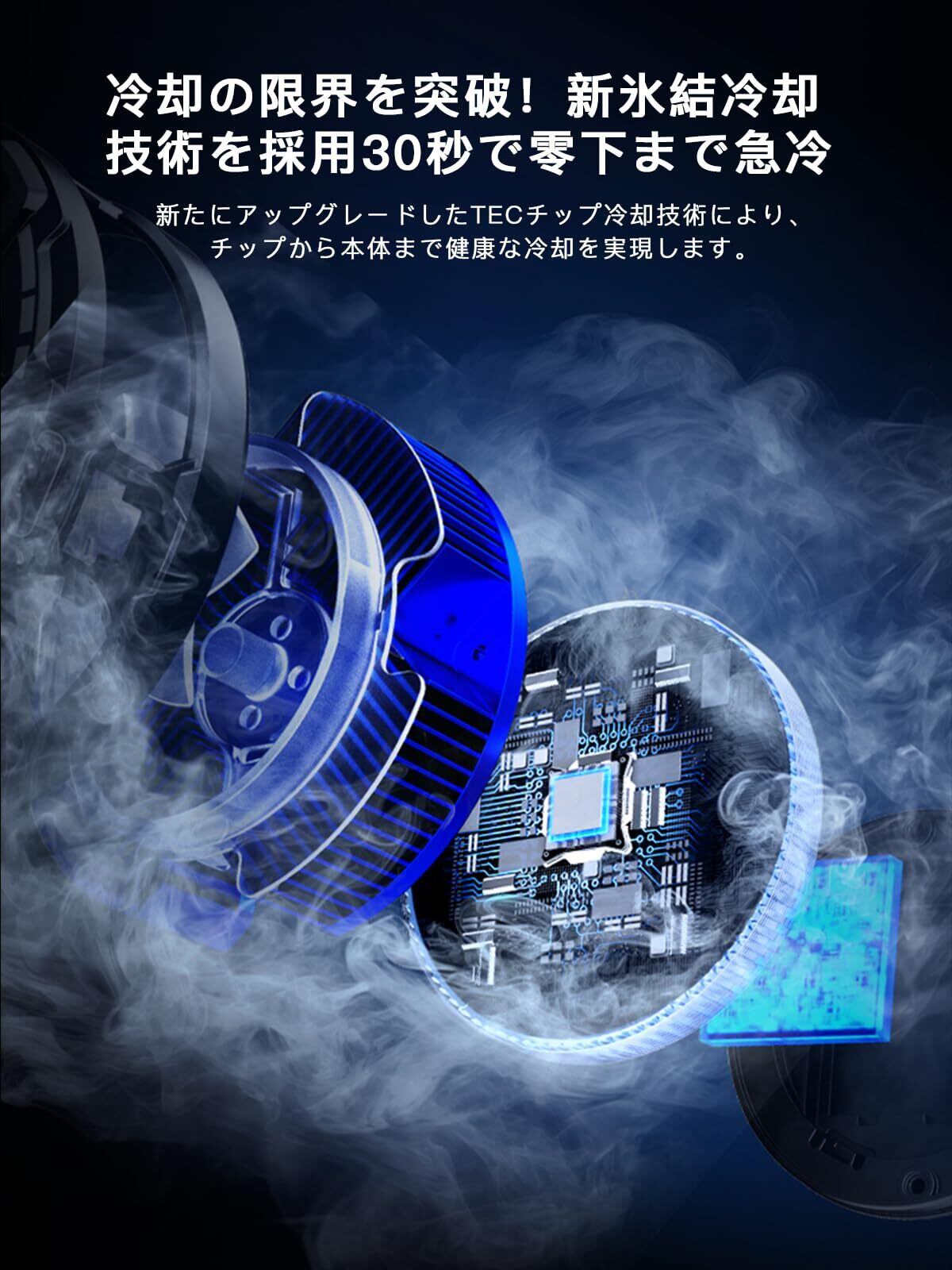 ❄【新技術!瞬間冷却ファン!半導体可変周波数冷却 &カスタムTECチップ】 超高速冷却! わずか30秒で氷点下到達の驚異的な冷却スピード。業界トップクラスの冷却力! 最大40℃冷却・-12℃の低温を実現。灼熱のスマホも瞬時にクールダウン!安心の過熱保護! 内蔵双方向NTCセンサーが温度を監視。60℃以上/-12℃以下で自動電源オフ。安全かつ製品寿命を延長。