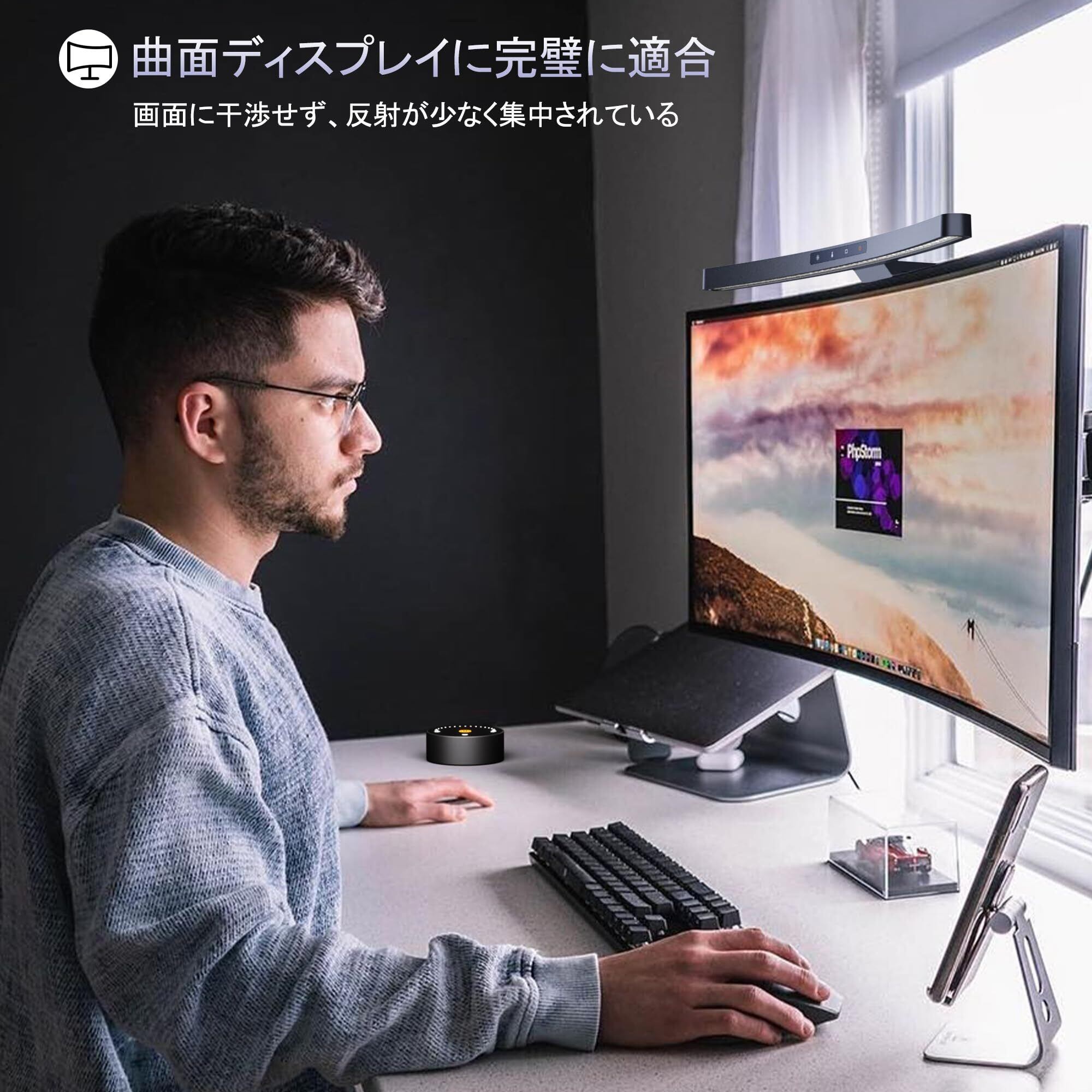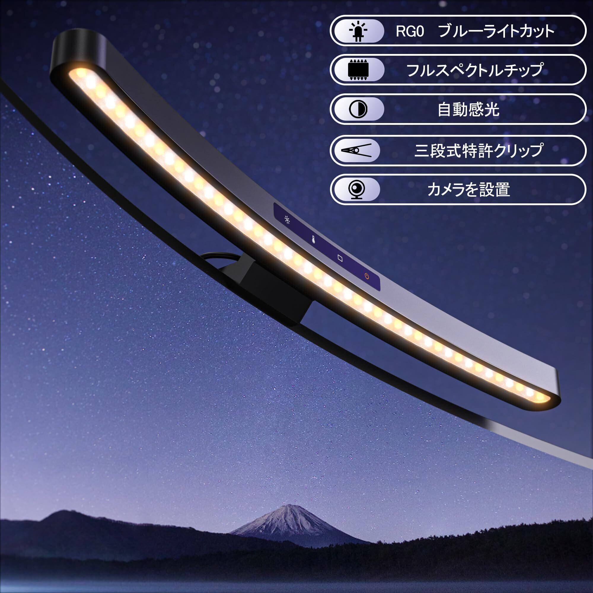 【自動調光で快適な作業環境を】 モニターライト内蔵の光センサーにより、リモコンでダブルクリックするだけで、最も快適な明るさに自動調整されます。さらに、周囲の光が暗くなると自動でライトが明るくなり、逆に周囲が明るくなるとライトが暗くなります。ただし、部屋内の他の光源が自動感光機能に影響を与える場合がありますので、ご注意ください。