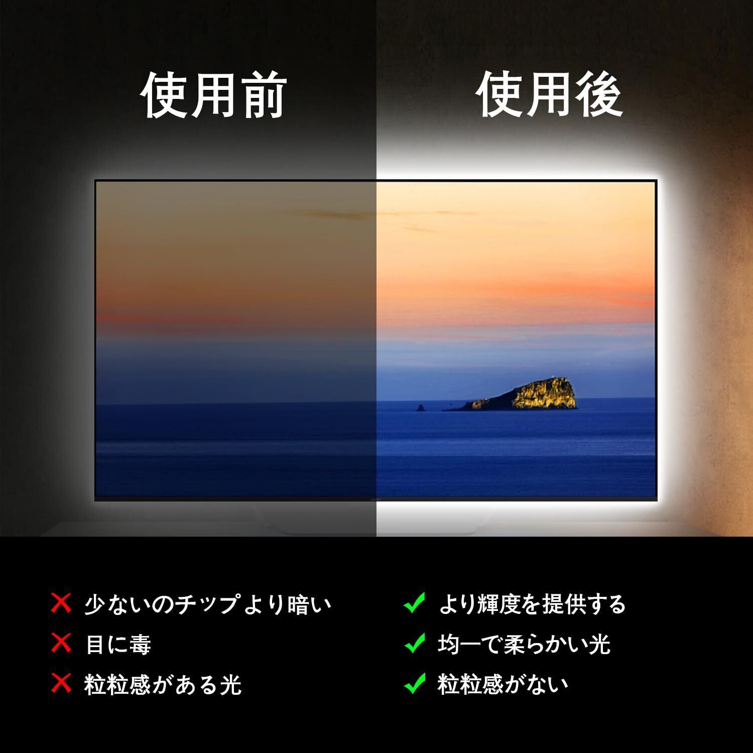 「高輝度&調光可能」チップの搭載数が通常のledテープライトより倍以上(1m/320個)の為、はるかの輝度を提供します。輝度も好みに応じて調整することが出来ます。(最大10段階で調整でき)
