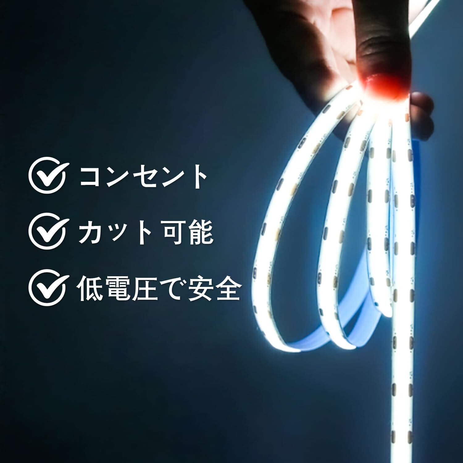 ShineBurky ledテープライト COB 高密度 usb給電 2m テープ照明 10段階調光 320LEDs/m カット可能 両面テープ設置 高輝度 テープライト cob ホワイト