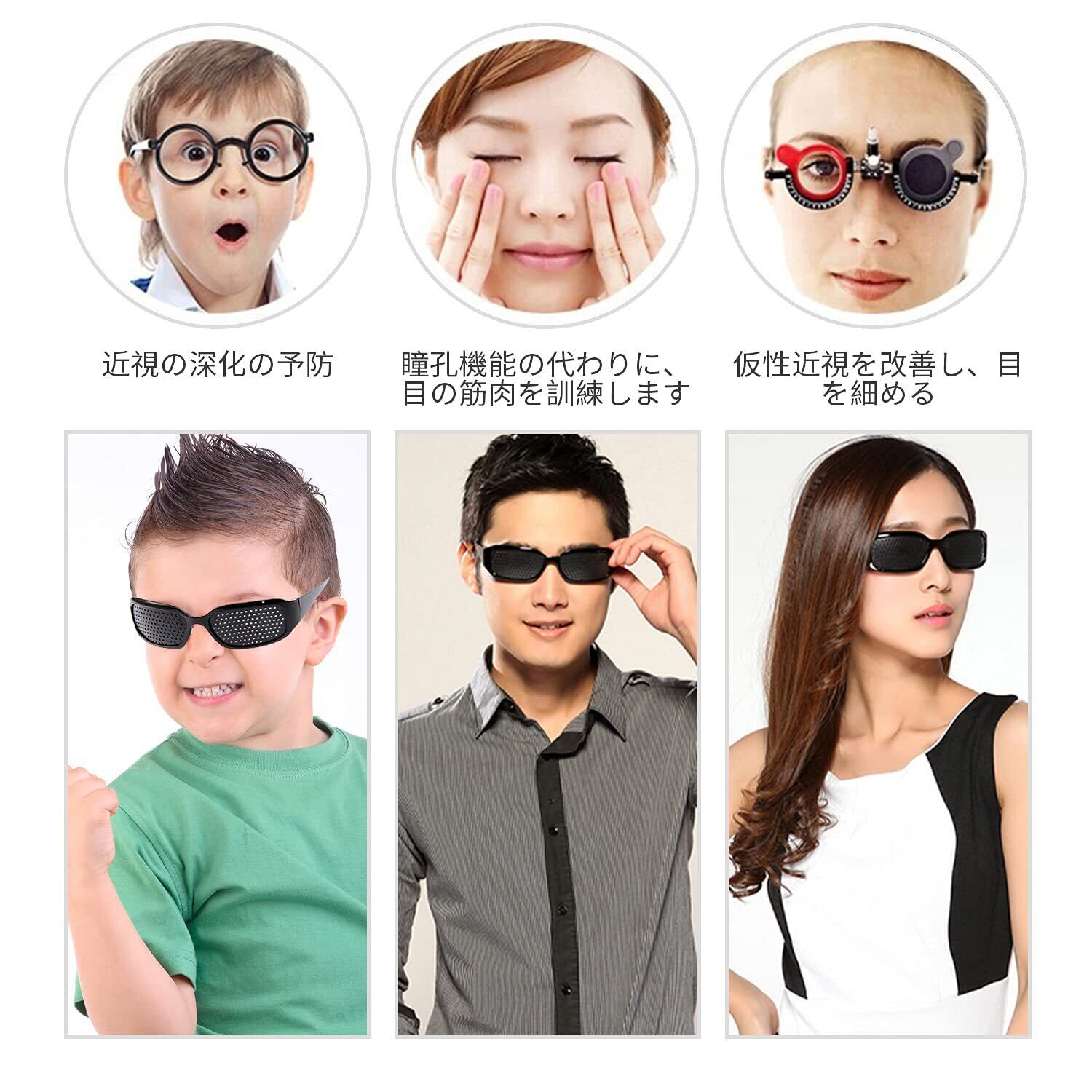 ZHEJIA ピンホールメガネ 【3本入り】視力回復 メガネ 視力トレーニング 視力トレーニング 視力改善 老眼 疲れ目 リフレッシュ 乱視の改善 視力トレーニング 男女兼用 3穴 5穴 多穴