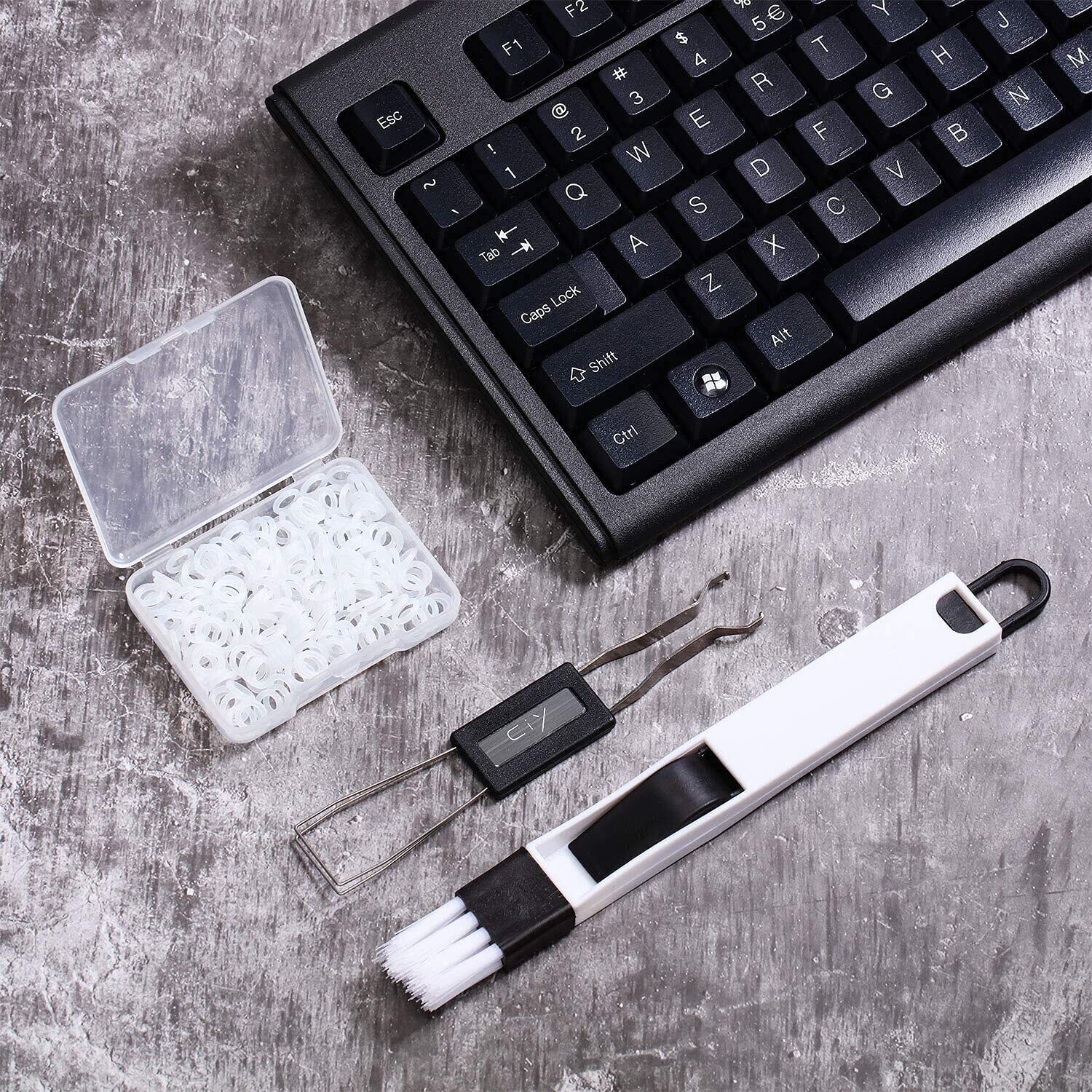 GTIWUNG キーキャッププーラークリーニングツールとゴム製Oリングサウンドダンパー キートップ引き抜き工具 メカニカルキーボード 2in1 メンテナンス工具 200 PCSラバーOリング 1個のクリーニングブラシ