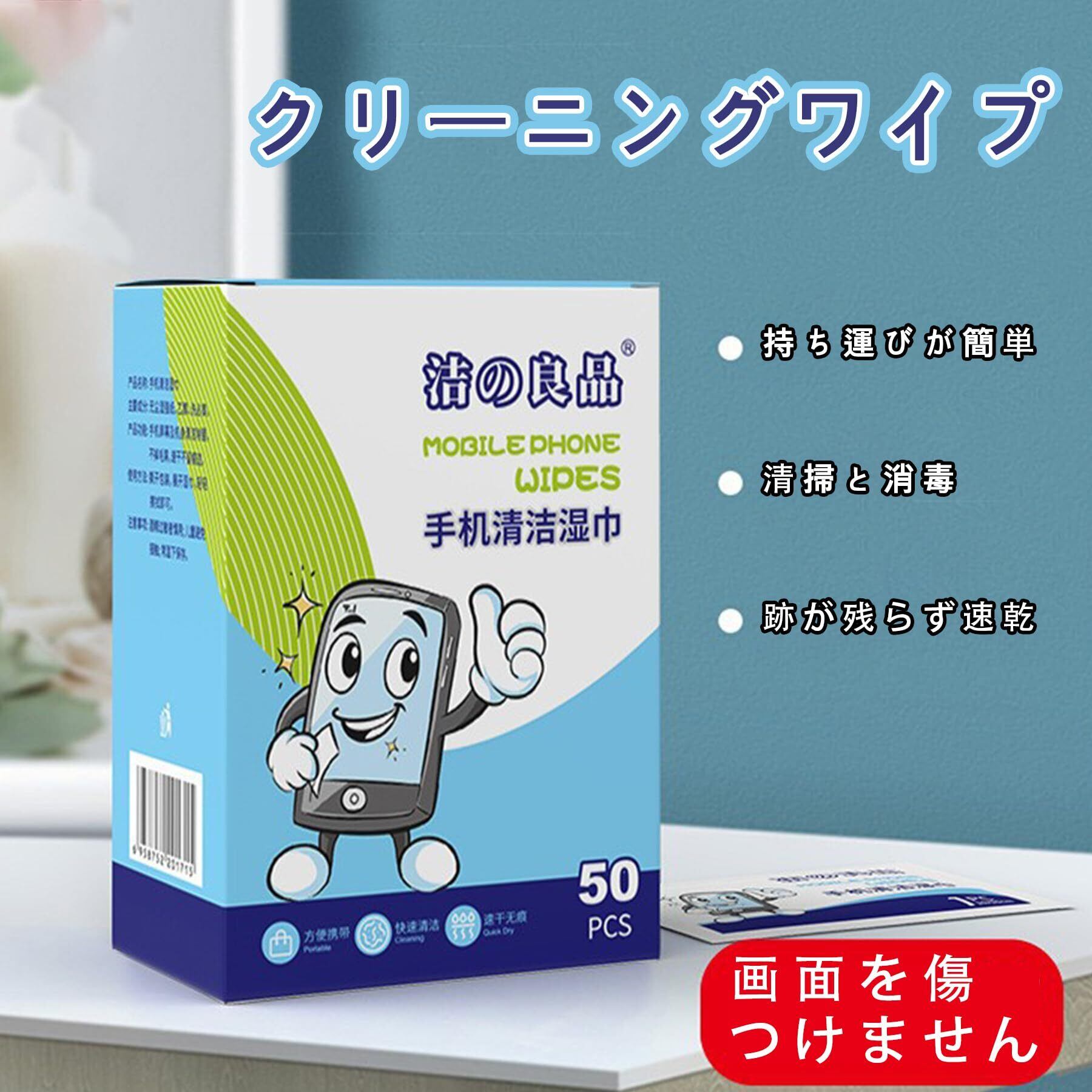 ウェットティッシュクリーナー 液晶画面用 クリーニングウェットティッシュ スマホ タブレット パソコン用 個包装 速乾 拭き跡なし 除菌対応 50枚入