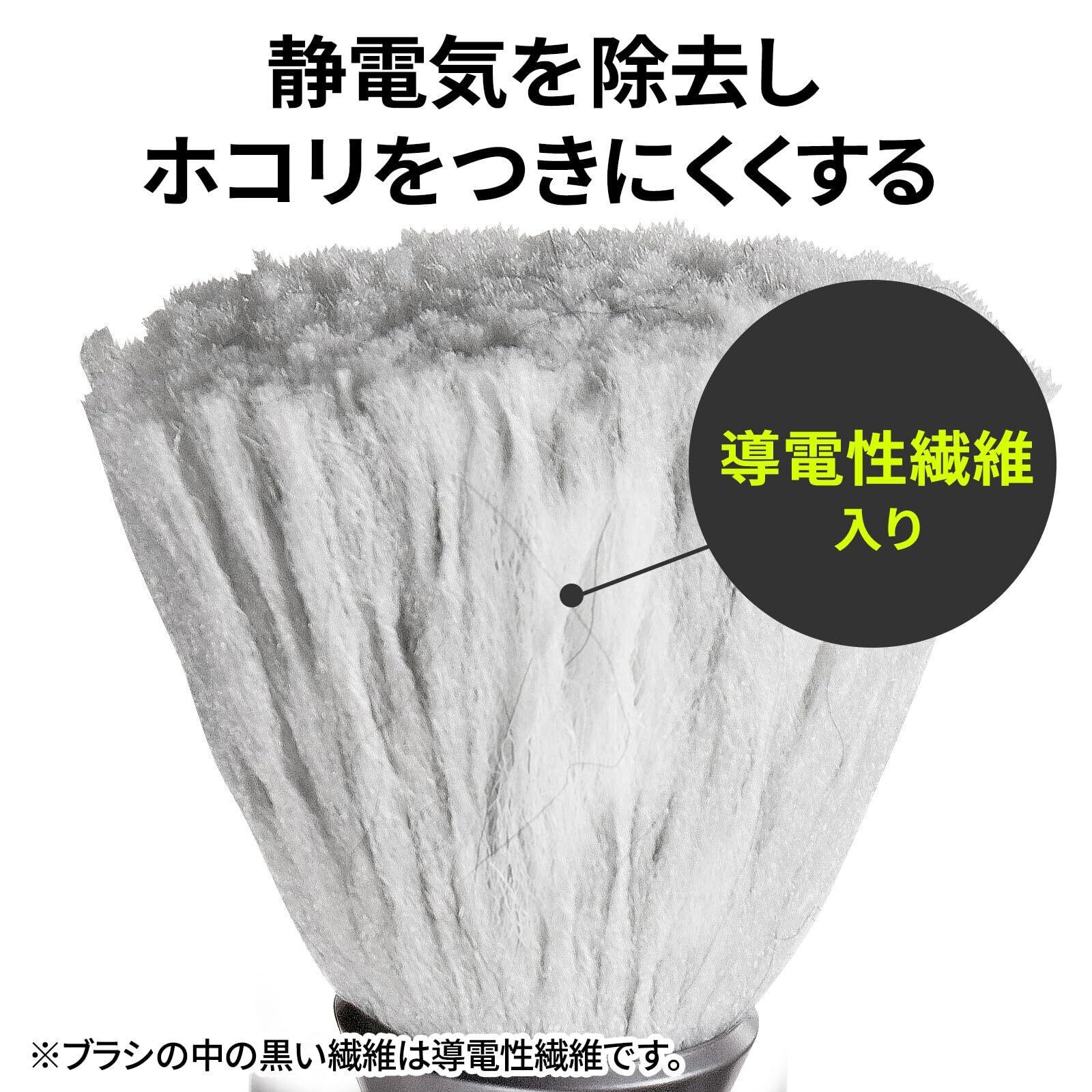 導電性繊維入りの除電ブラシがホコリと同時に静電気も除去し、ホコリをつきにくくします。※ブラシの中の細かい黒い繊維は導電性繊維です。