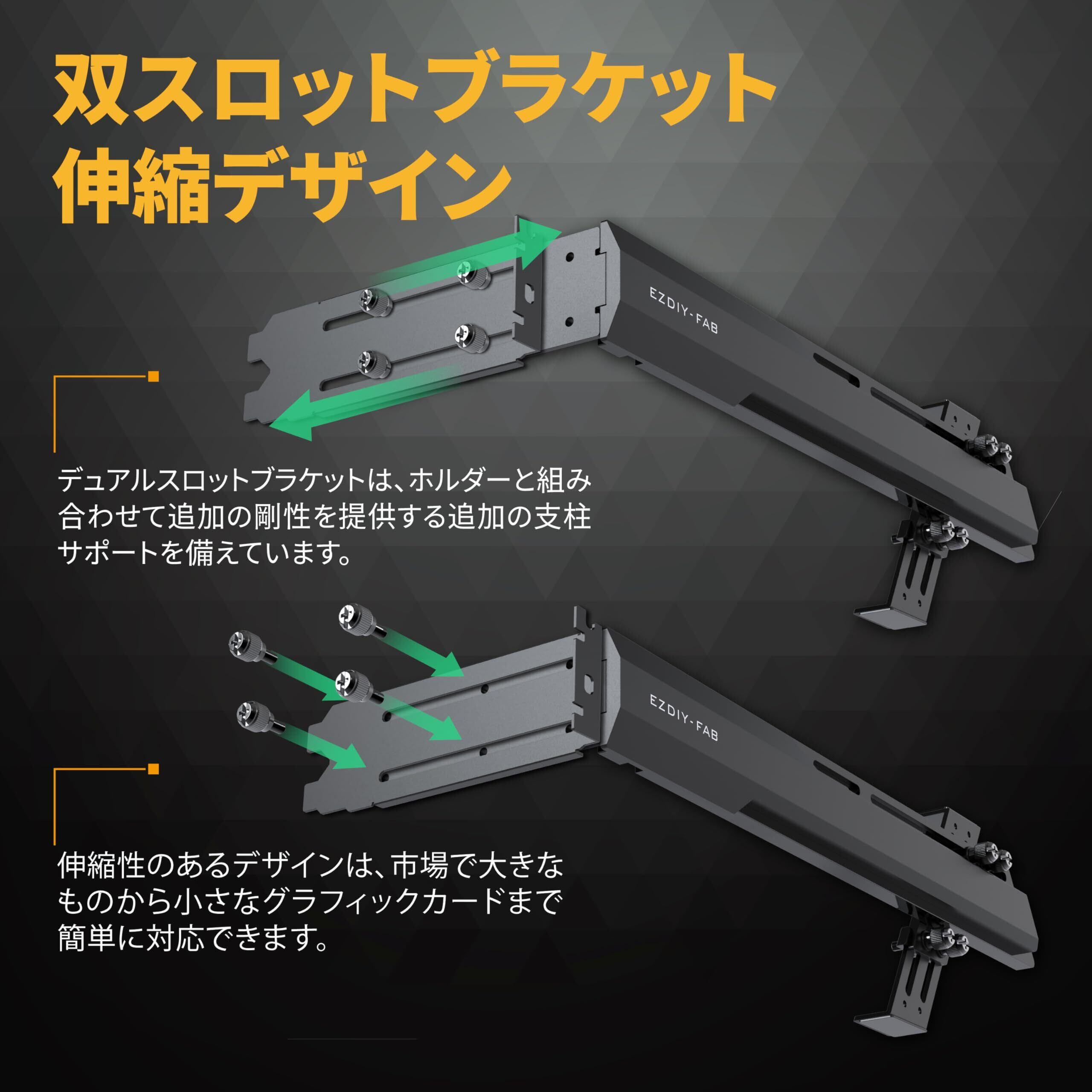 EZDIY-FAB 汎用ビデオカードホルダー GPUブレースサポート グラボ 支え gpu サポート 伸縮構造ブラケット グラフィックカードを固定する GPUを支える GPUブラケット GPUスタンド - 黒