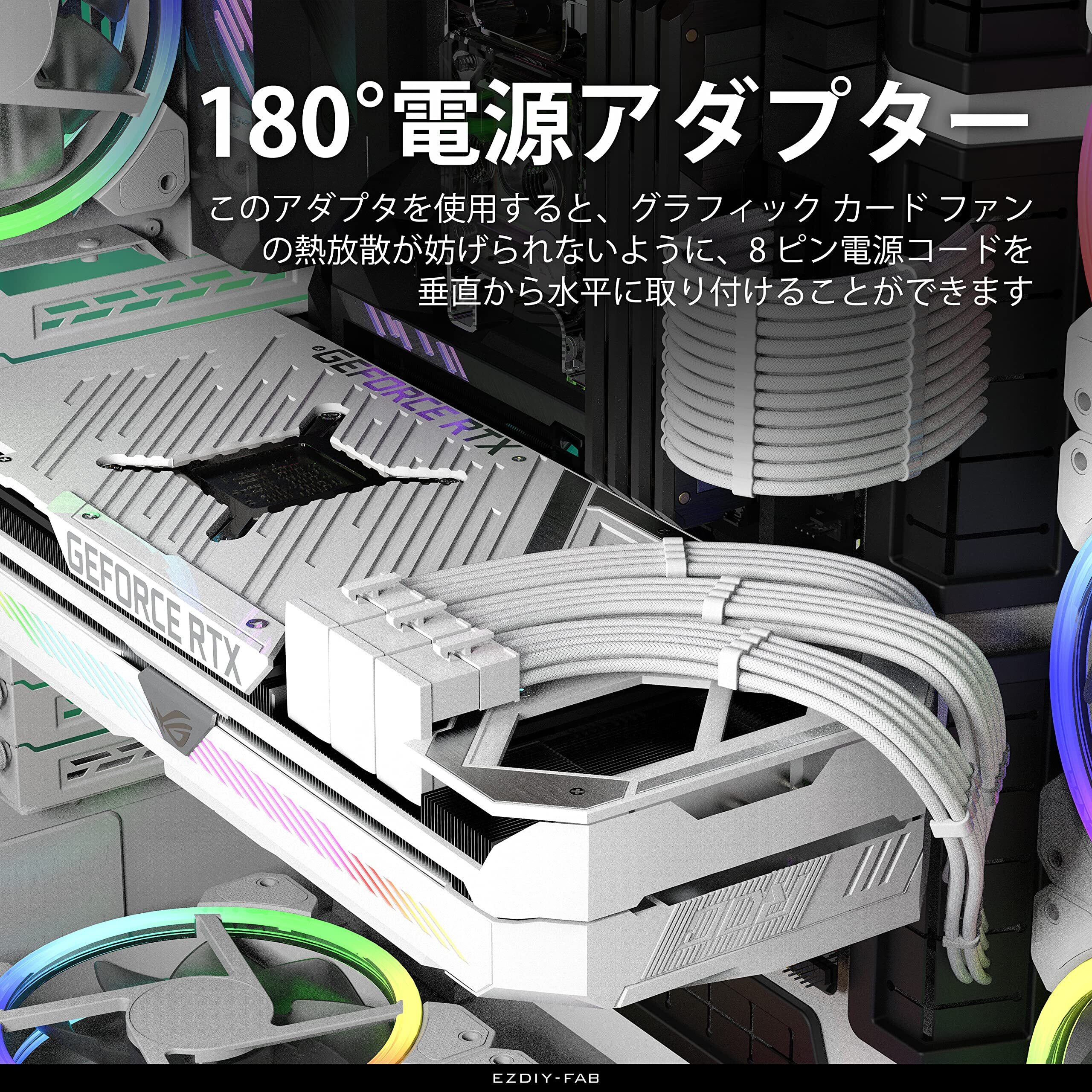 PCIE 8PIN ケーブルの取り付け方向を変更するために設計されています。 ご購入前にGPUコネクタの向き(STD[標準タイプ]またはRVS[リバースタイプ])にご注意ください。