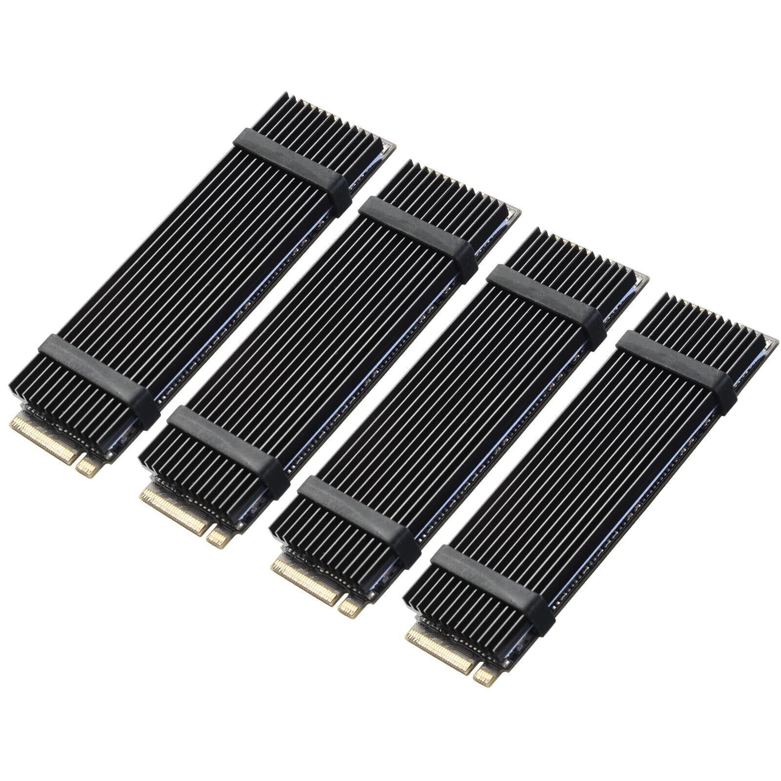 ELUTENG M.2 SSD ヒートシンク 導熱接着シート付き 4個セット 2280 M.2 SSD 冷却 熱暴走対策 冷却ラジエーターフィン アルミニウム製 NVME SSDクーラー 熱伝導性両面テープ SSD シリコンゴム付き 黒 74×23×4mm M.2 SSD Heatsink