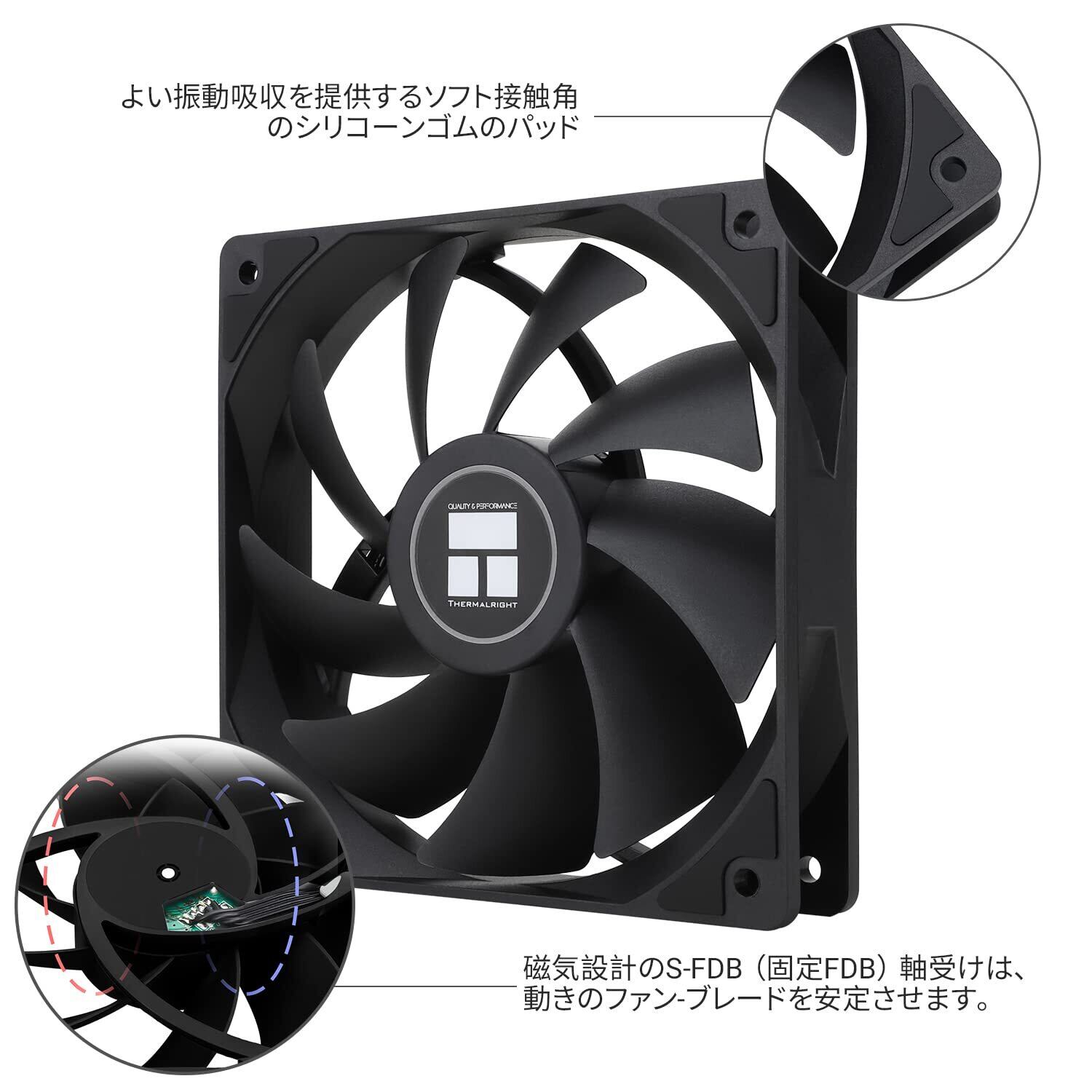 【高品質軸受】丹念に開発された高品質S-FDB軸受は、pc冷却ファンブレードがリフトモードで振動する問題を解決し、ファン騒音を最小限に抑えるとともに、必要な時に最大の冷却性能を提供し、ファンの寿命を延長した。