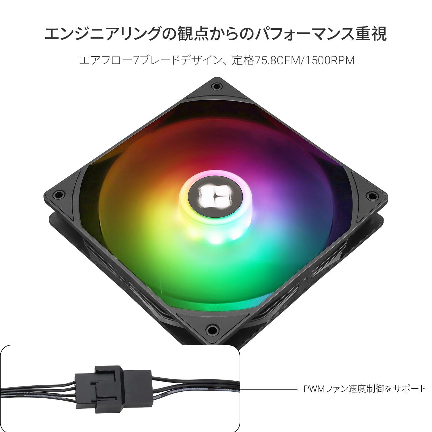 [優れたLEDライト]高輝度LED噴霧argbファンブレードは、光を効果的に反射し、ARGB照明効果を柔らかくし、クーラーとケースにより完全に一致します。ARGBをサポートする最大17モードのライトエフェクト、マザーボード上のポートを介して色を管理および同期できます。
