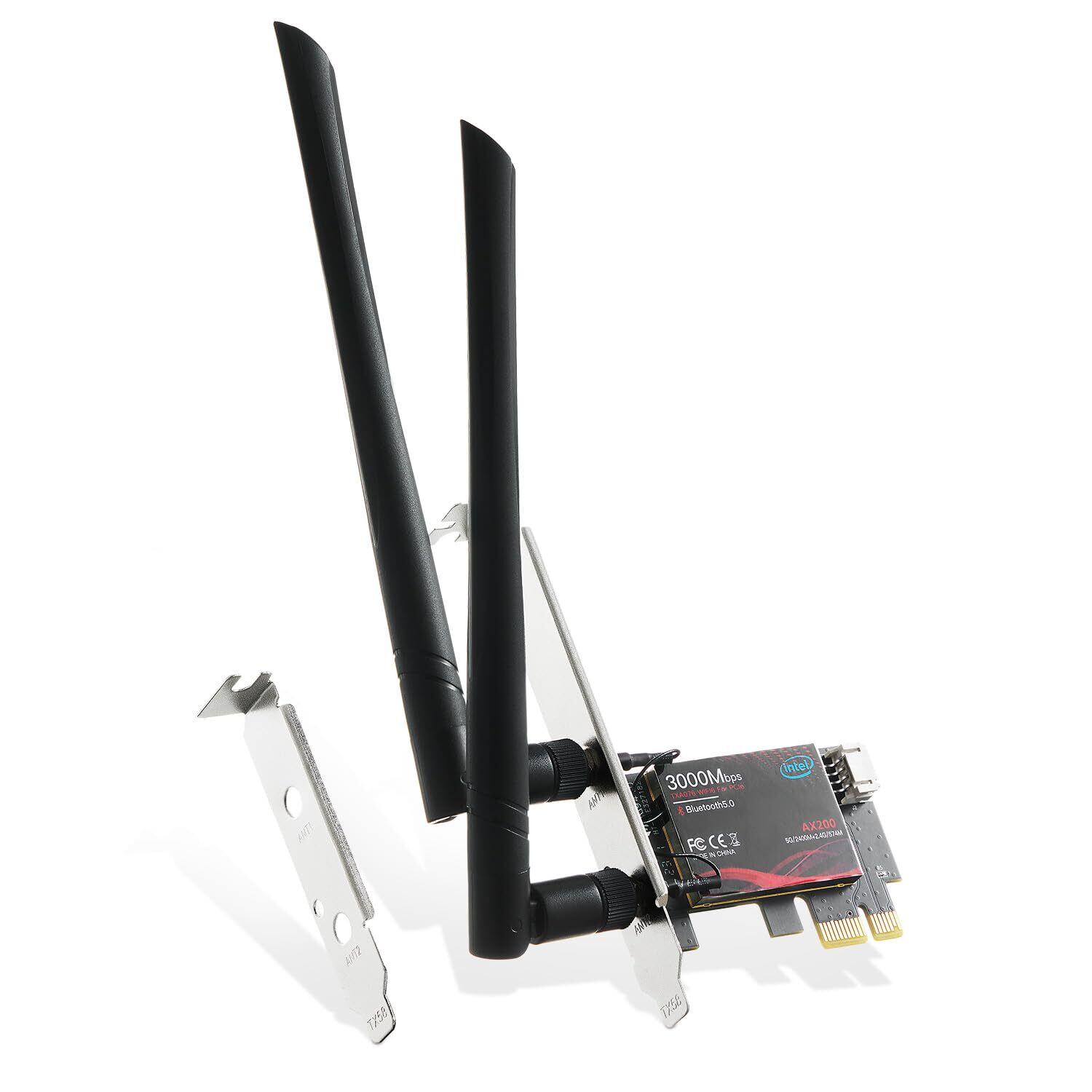 Binardat WiFi6カード AX3000 PCIe WiFiネットワークアダプター Intel AX200チップ Bluetooth 5.0 デュアルバンド 2.4GHz/5GHz OFDMA & MU-MIMO Windows 10/11