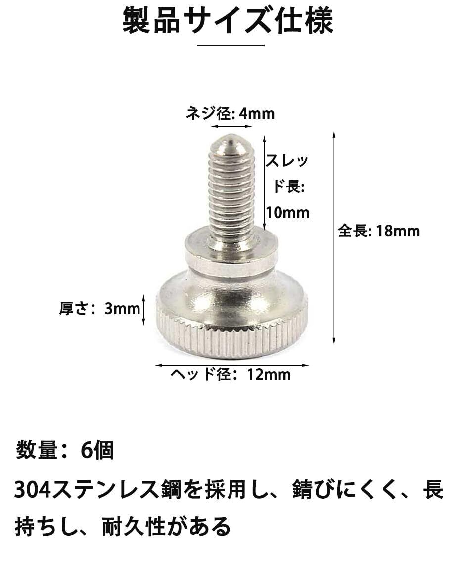 304ステンレス鋼製ノブねじ、M4 x 10mm、VESA規格対応、締めやすい、モニターアーム用ネジ m4 ボルト(6個入り)