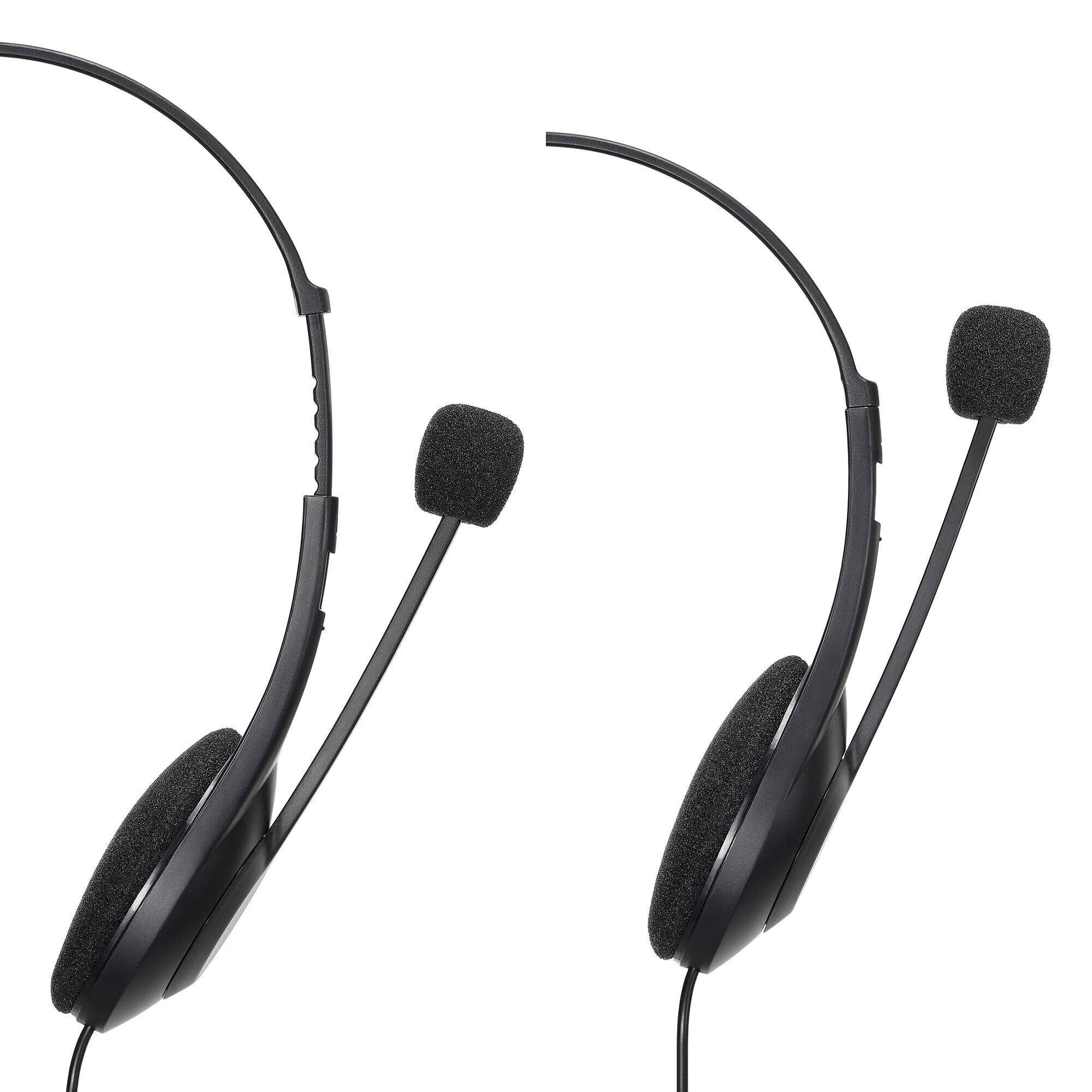 ◆使いやすく、蒸れにくい、クリアに話せるφ3.5mmプラグの両耳ヘッドセット◆φ3.5mm4極ステレオミニジャックのあるPCやタブレットに接続するだけで、そのまま使用できます。◆ノイズキャンセリング方式を採用。周囲の雑音を抑え、相手にクリアな音声を届けます。さらに、付属のウインドスクリーンで自分の息によるノイズ(ポップノイズ)もカットできます。◆耳が蒸れにくく、ずっと着けていても快適さをキープ。軽量設計で首や肩への負担も少なく、長めの会議でも安心です。コードにあるコントローラーで、音量調整やマイクミュートのON/OFF操作が可能。通話中でもPC 画面から目を逸らさずに、自分の声を瞬時にミュートできます。◆カーボンブラックフィルムの振動板を採用したφ30mmドライバー採用。◆抗菌・消臭加工が施されています。一定の菌に対し増殖を抑えられるため、いつでも清潔に使えます。