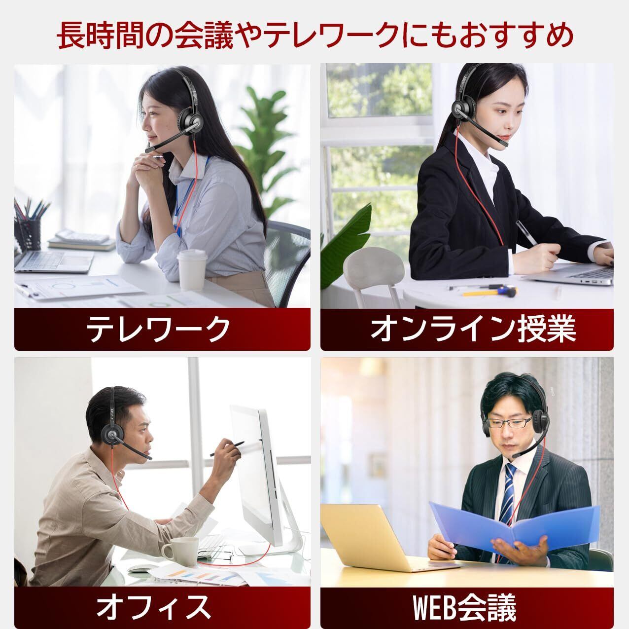 『超快適なヘッドセット』このUSBヘッドセットは、柔らかいメモリーフォームイヤーパッドを採用し、一日中つけても圧迫感ほとんどありません。超軽量のWeb会議用ヘッドホンヘッドセットは調節可能なヘッドバンドで、すべてのヘッドタイプのサイズに適しています。また、マイクが柔らかいので、口の位置にあわせて、調整することが可能です。